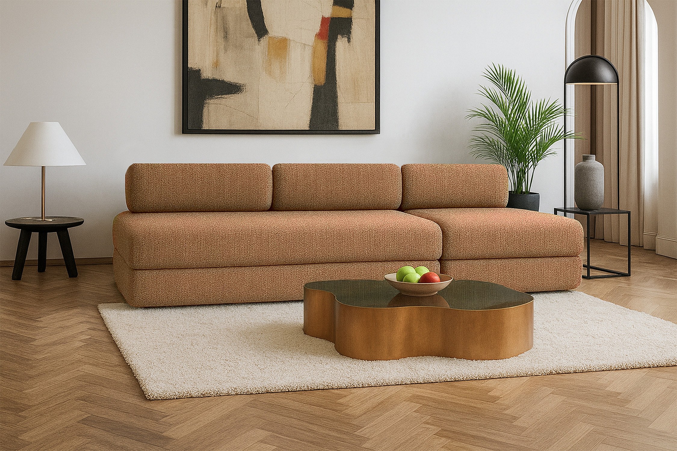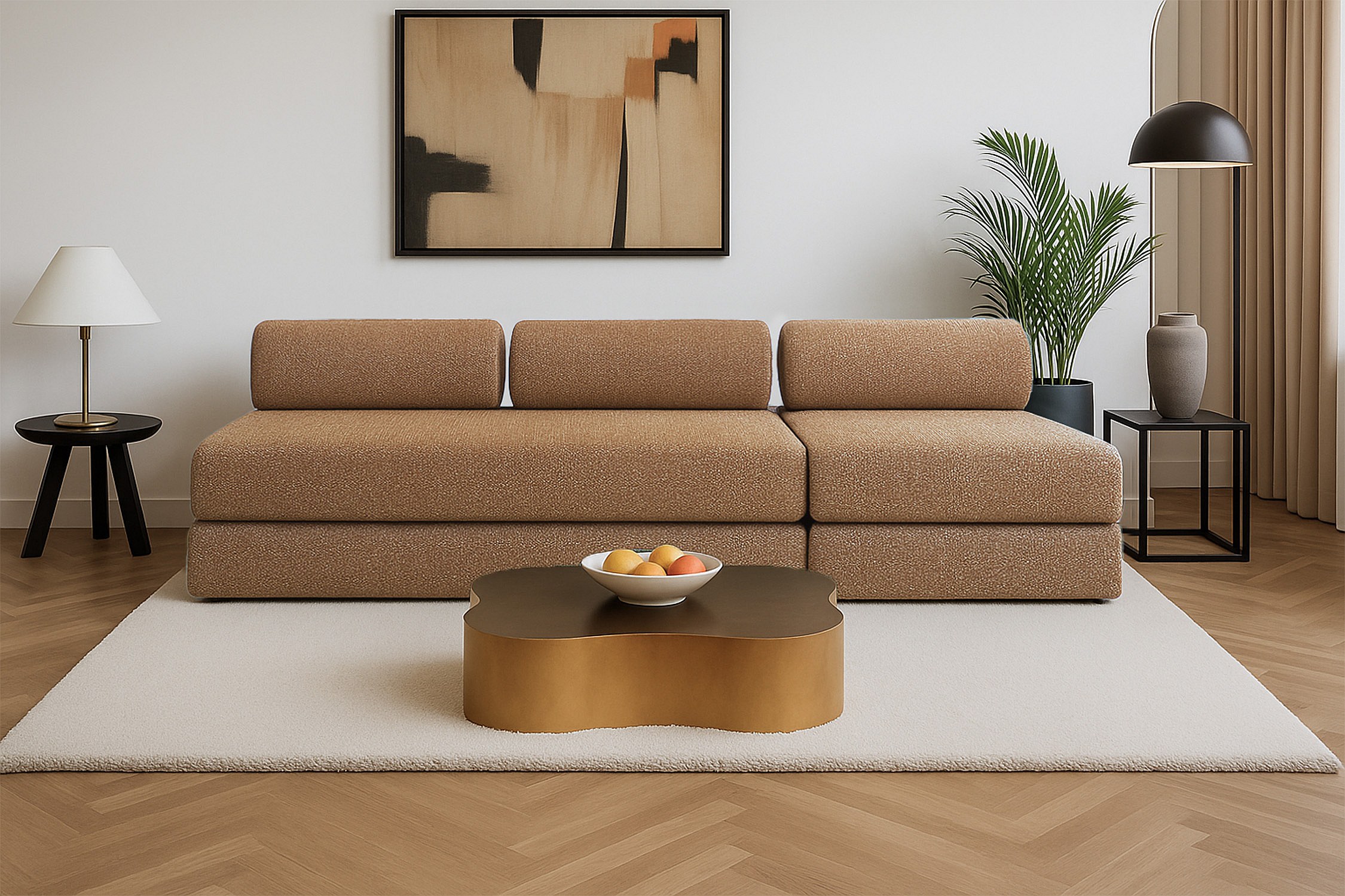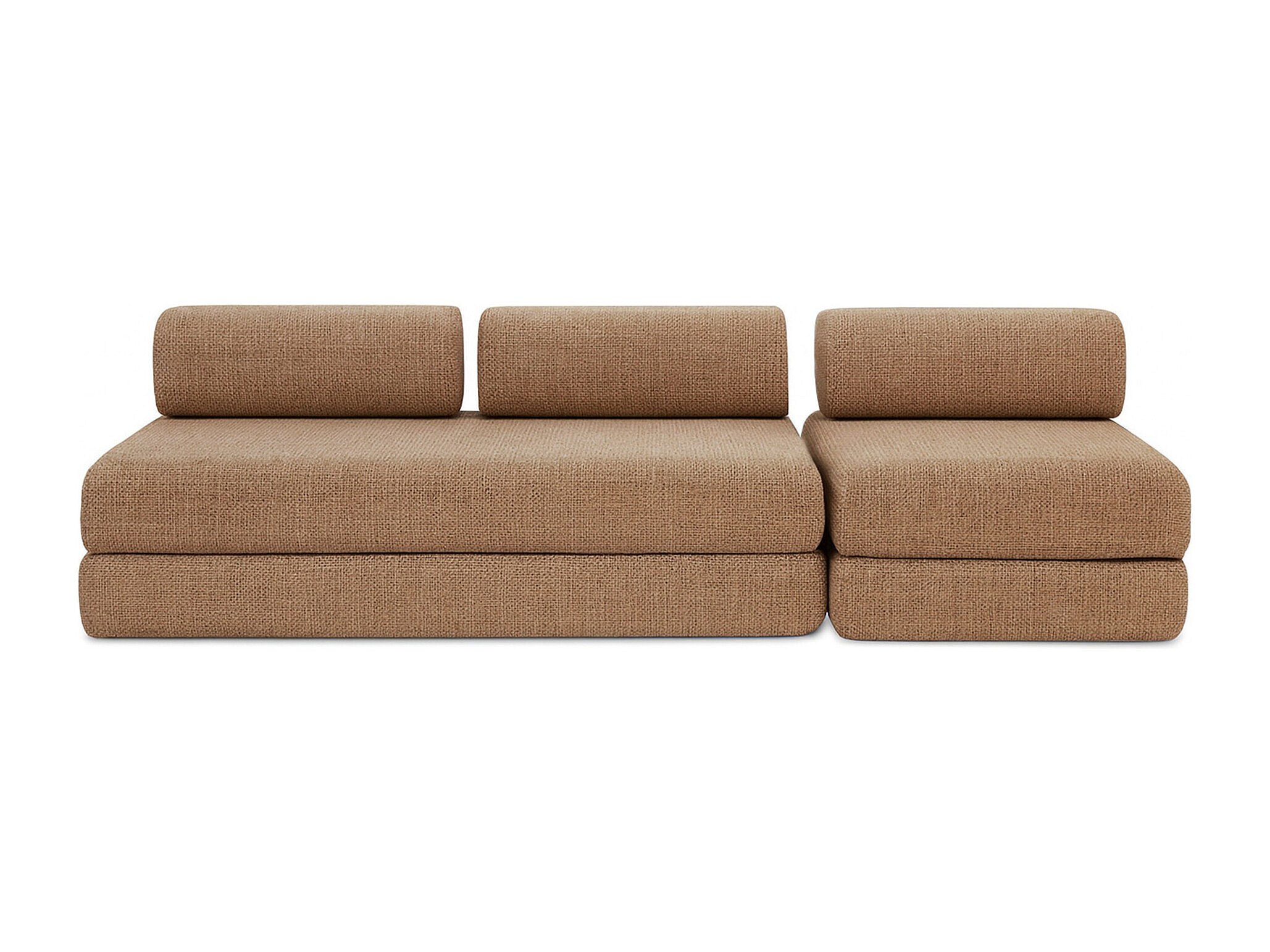 Canapé droit modulable et convertible 4 places - Tissu tweed - Marron