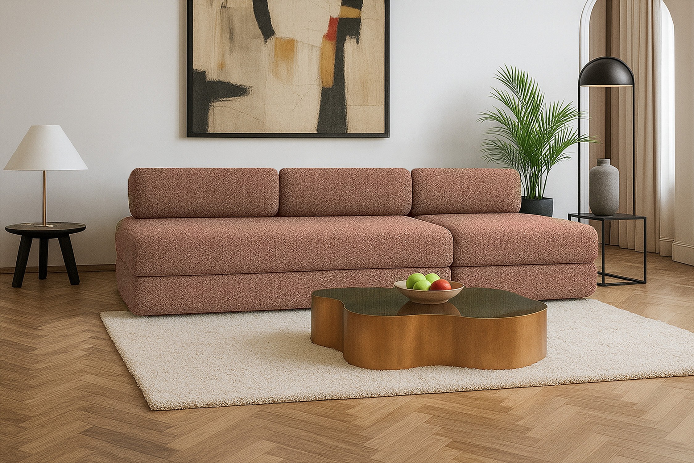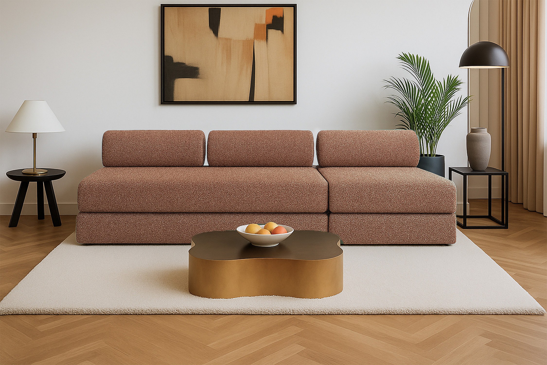 Canapé droit modulable et convertible 4 places - Tissu tweed - Rouge