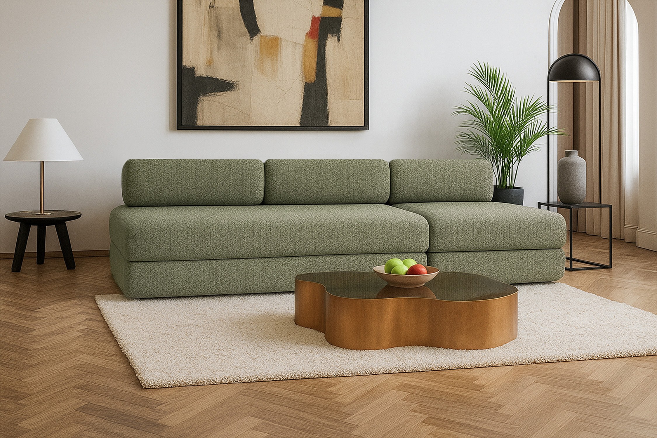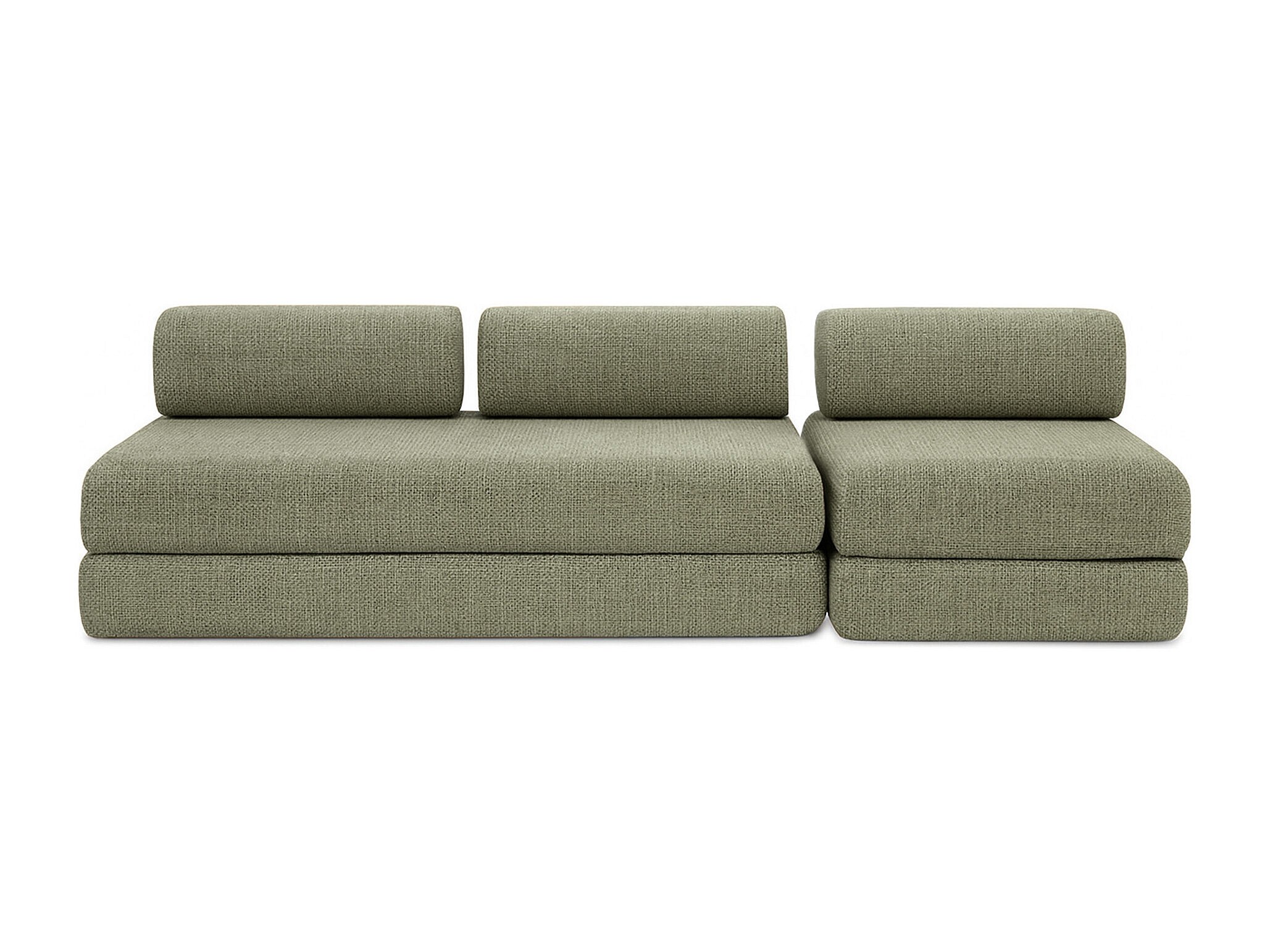 Canapé droit modulable et convertible 4 places - Tissu tweed - Vert