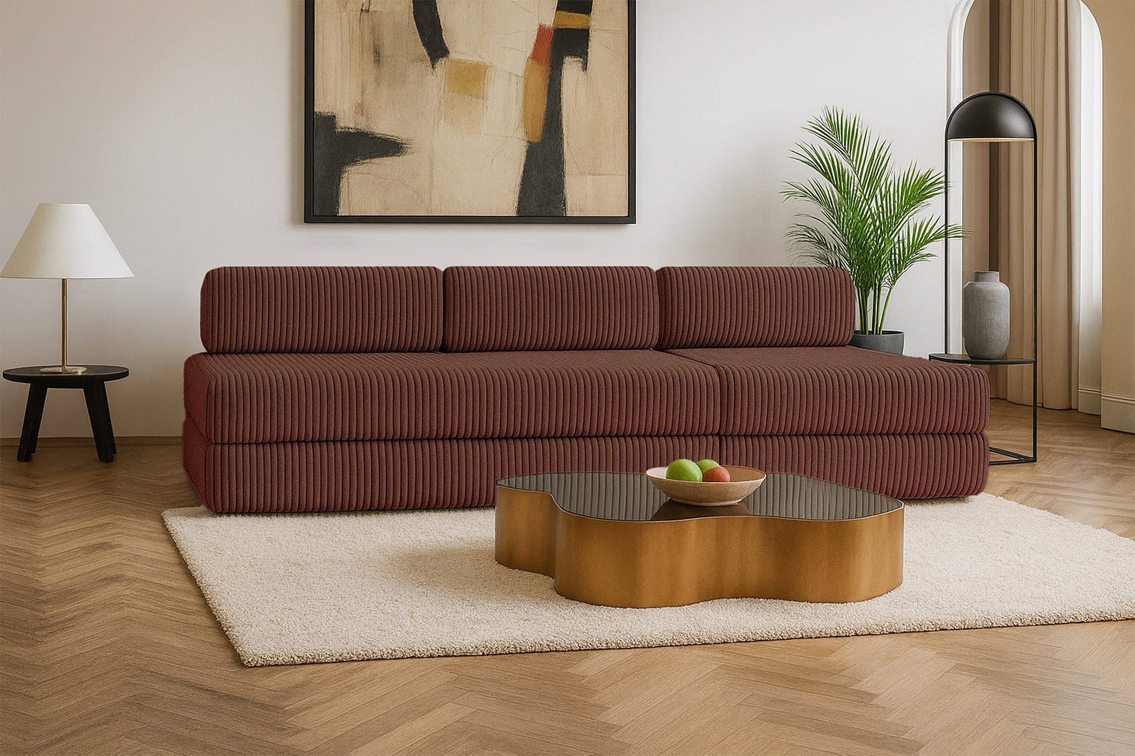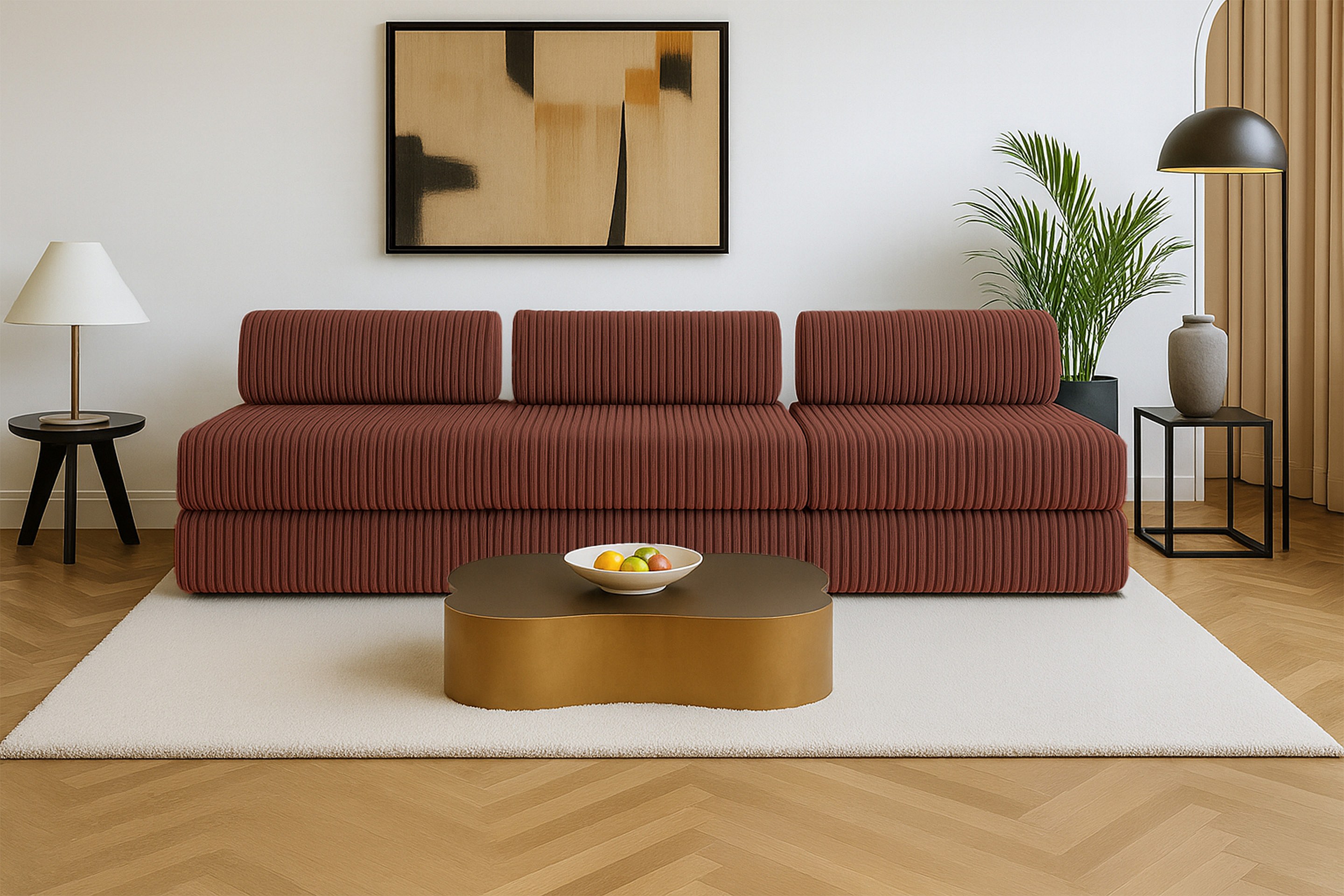 Canapé droit modulable et convertible 4 places - Velours côtelé XL - Terracotta