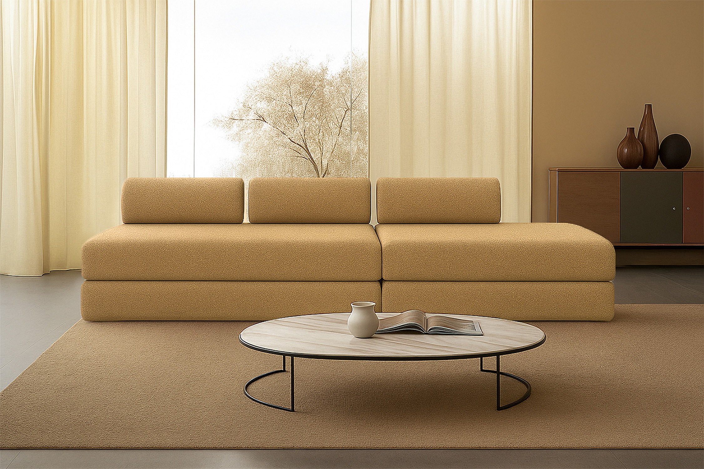 Canapé droit modulable et convertible 5 places - Tissu tweed - Jaune