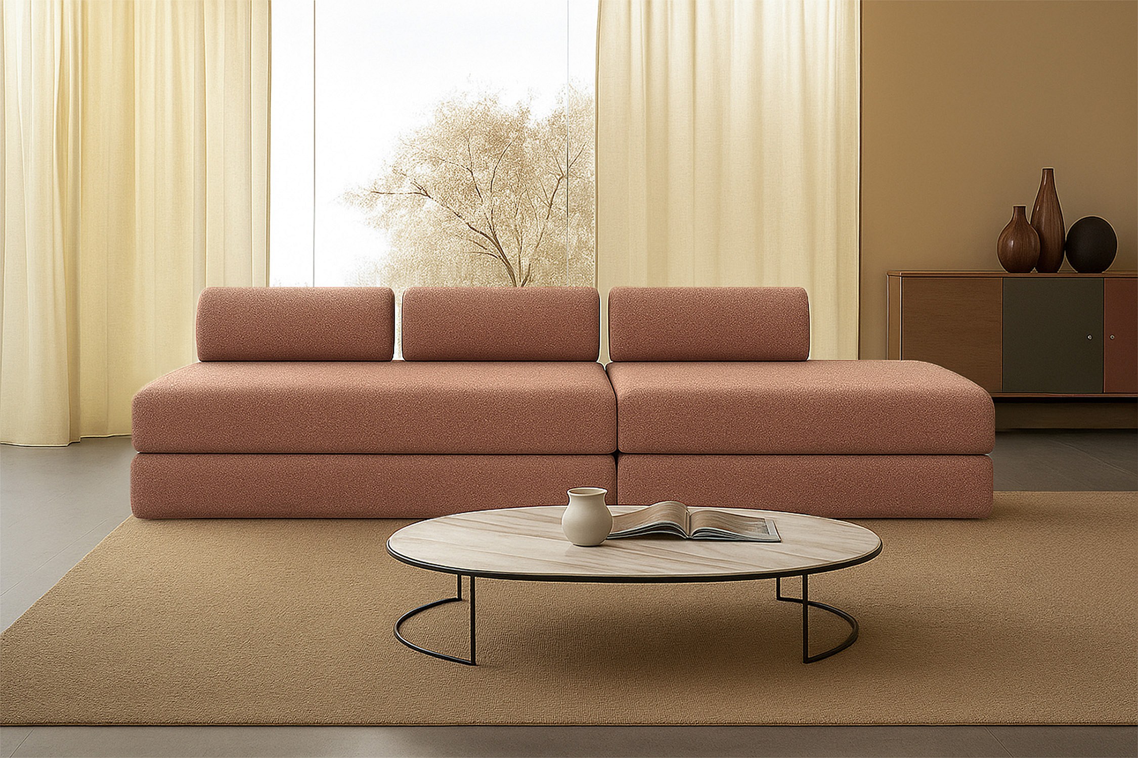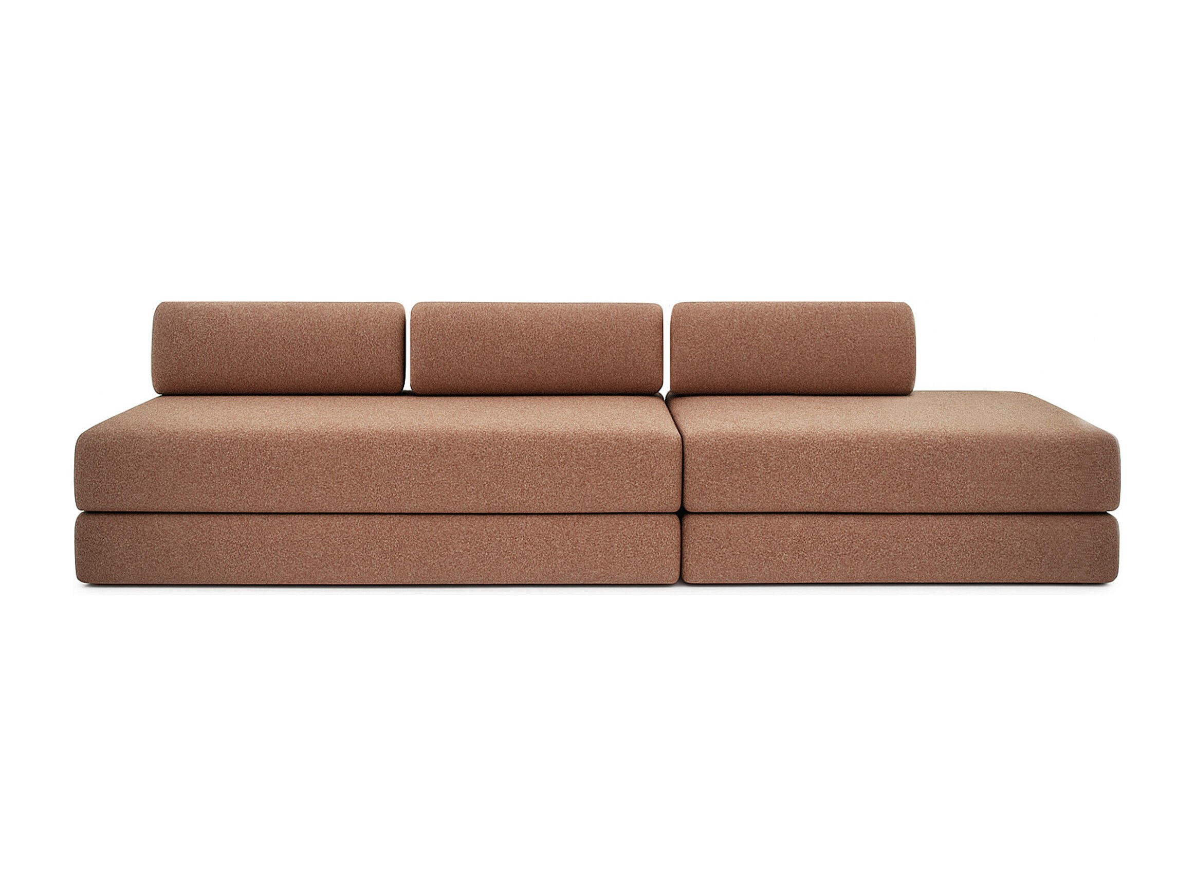 Canapé droit modulable et convertible 5 places - Tissu tweed - Rouge