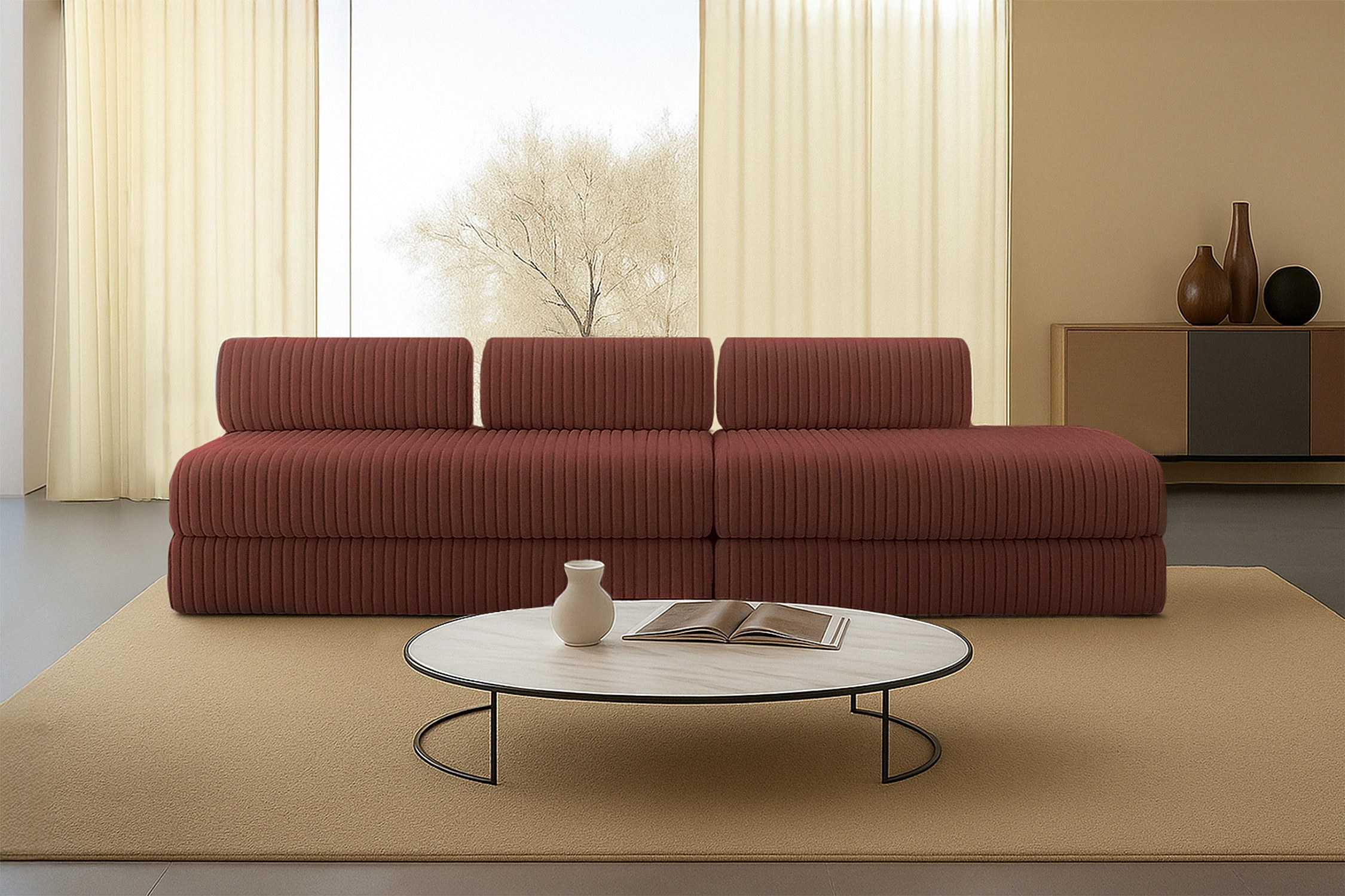 Canapé droit modulable et convertible 5 places - Velours côtelé XL - Terracotta