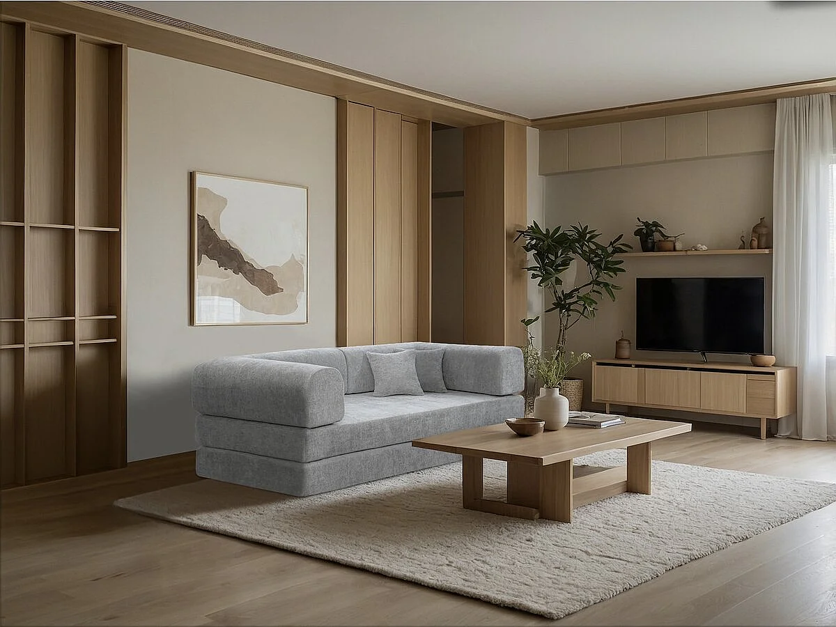 Canapé droit convertible en tissu texturé "Elior" - 3 places - Gris