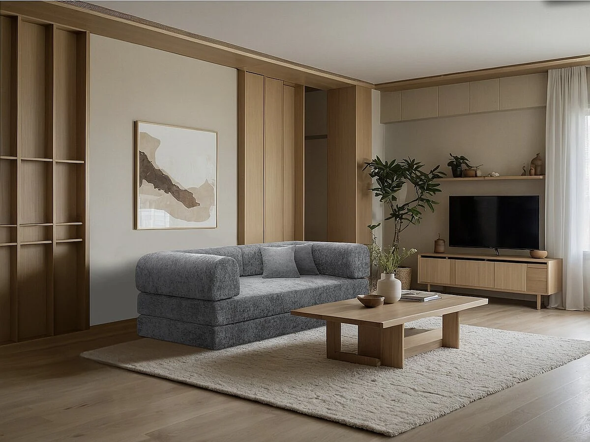 Canapé droit convertible en tissu texturé "Elior" - 3 places - Gris foncé