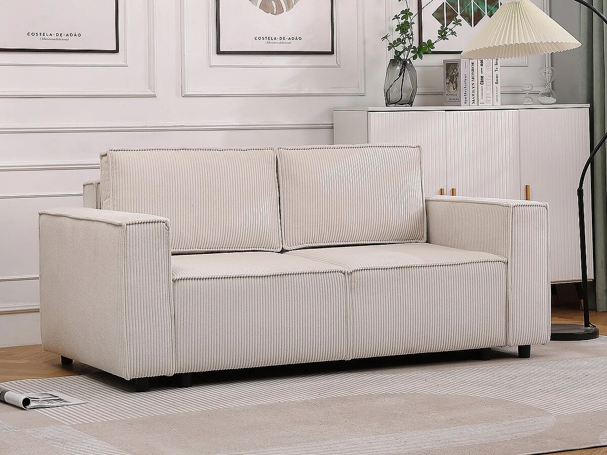 Canapé droit convertible en velours côtelé "Montaigne S" - 2 places - Beige