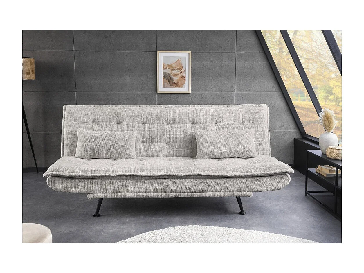 Canapé droit convertible SERENO blanc – Canapé-lit 3 places en tissu chenille