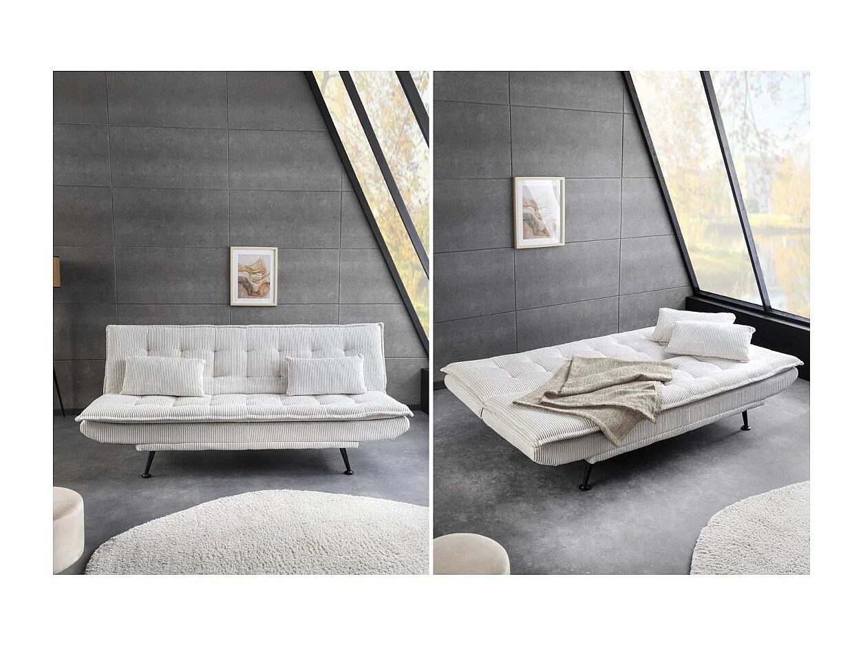 Canapé droit convertible SERENO blanc – Canapé-lit 3 places en velours côtelé