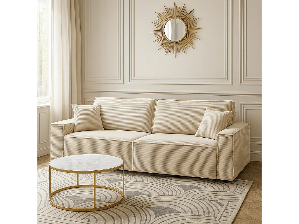 Canapé droit convertible velours côtelé 3 places beige IOLITE