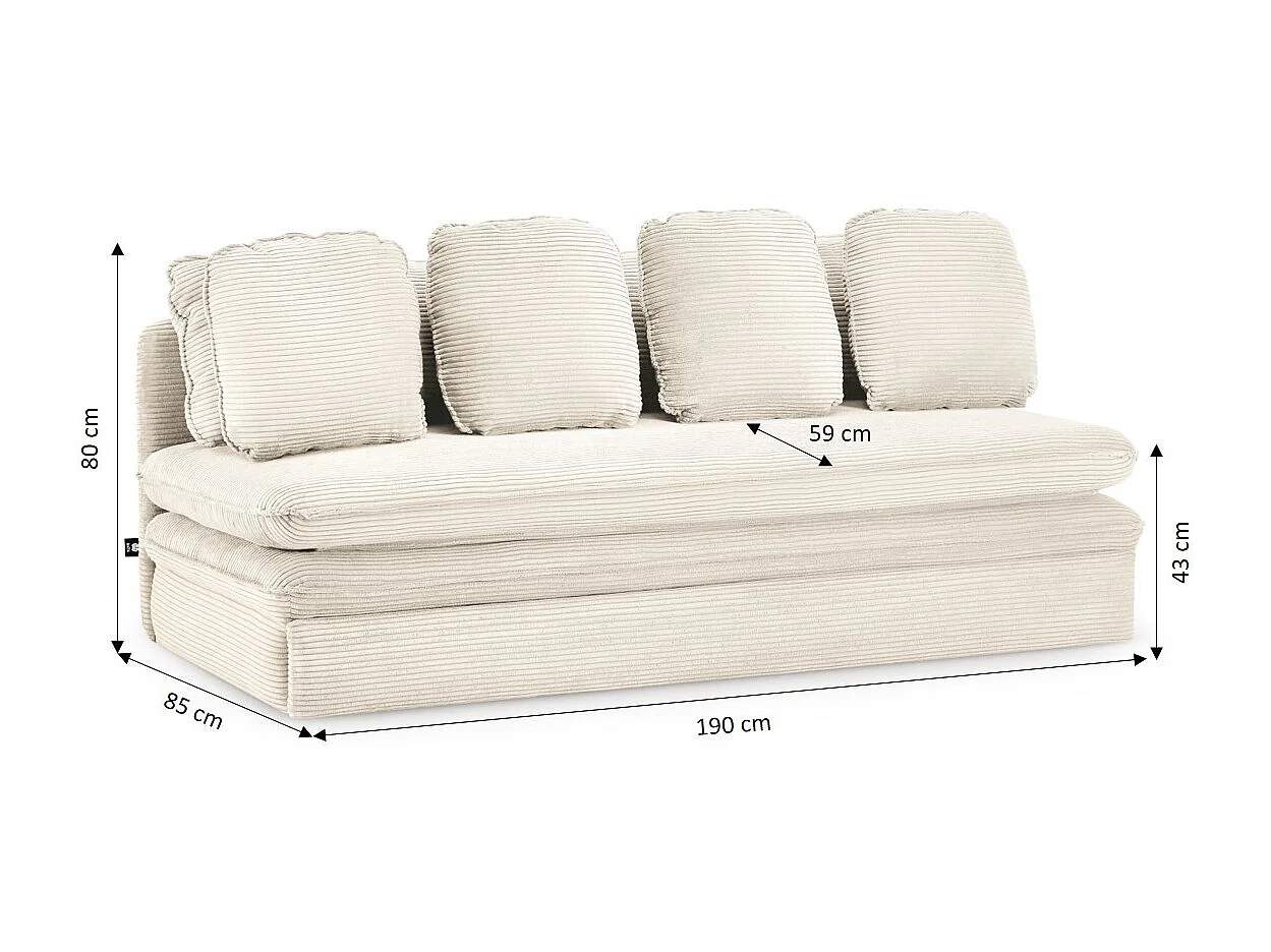 Canapé droit convertible velours côtelé 3 places écru SERON