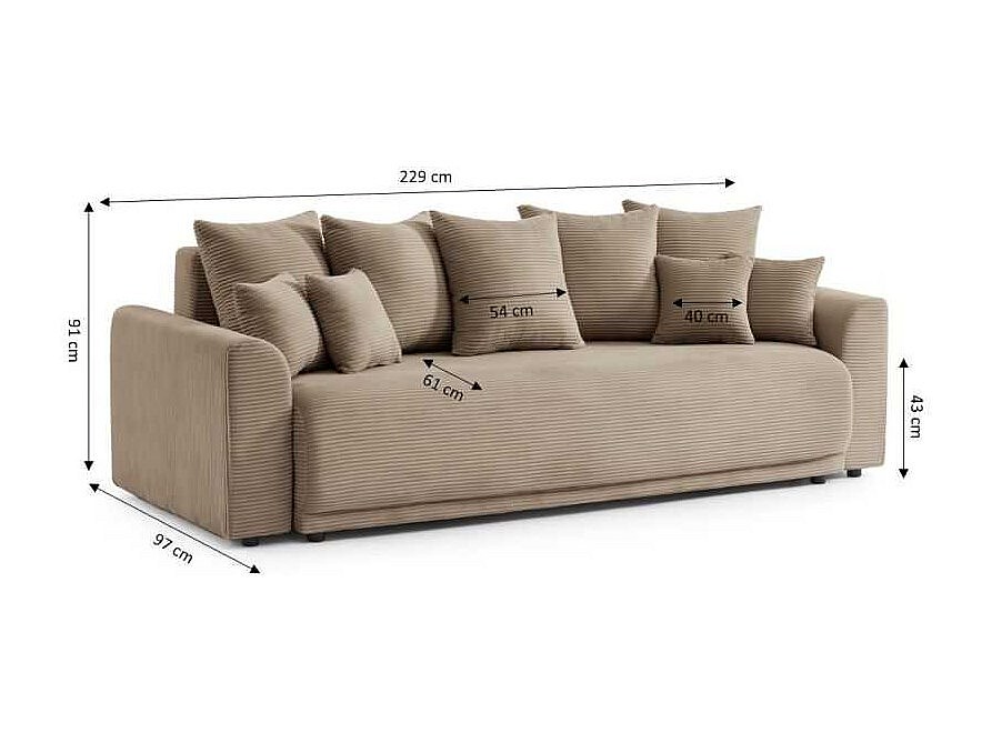 Canapé droit convertible velours côtelé 3 places grège CALCITE
