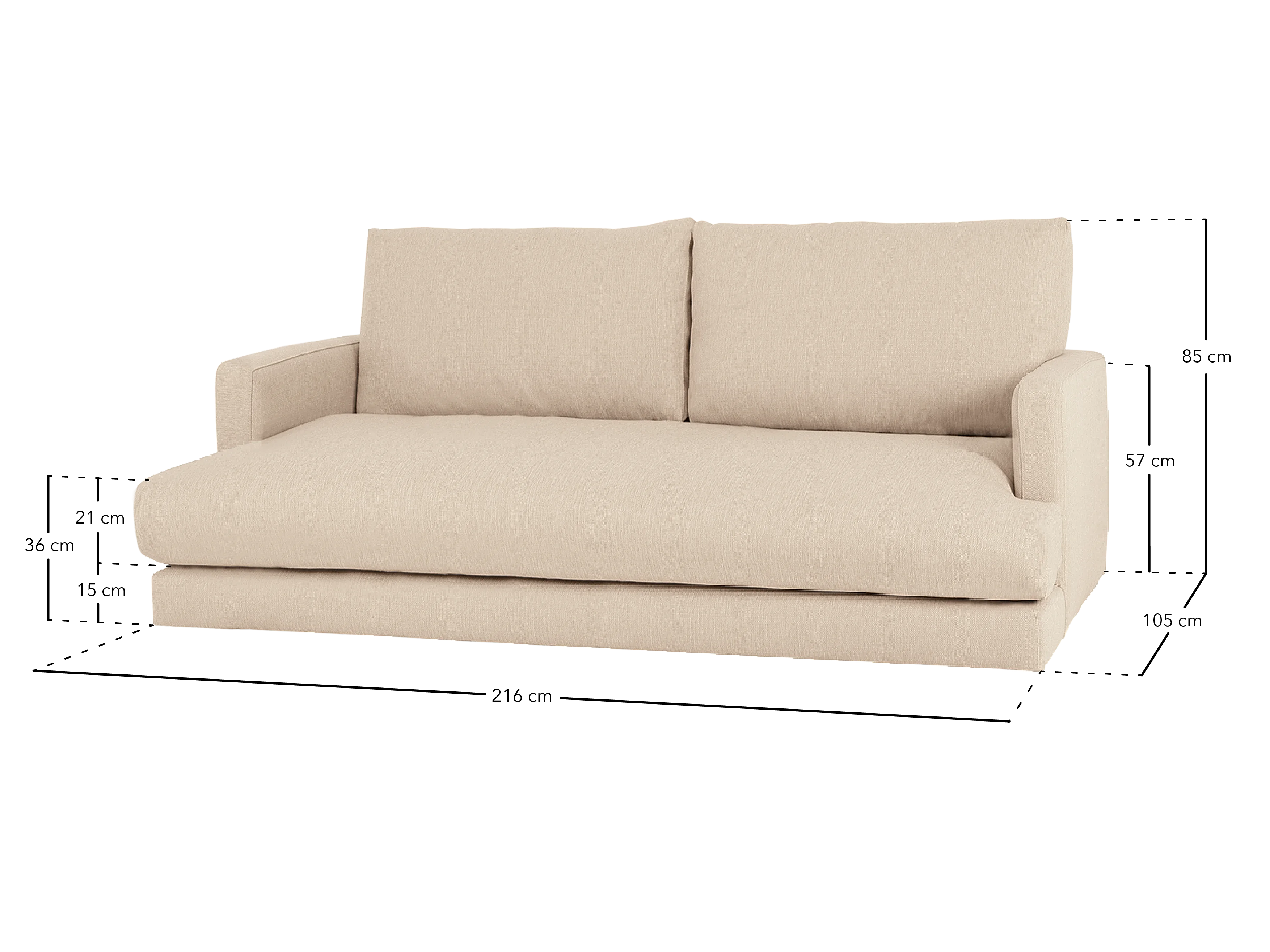 Canapé droit couleur blanc cassé de 215cm
