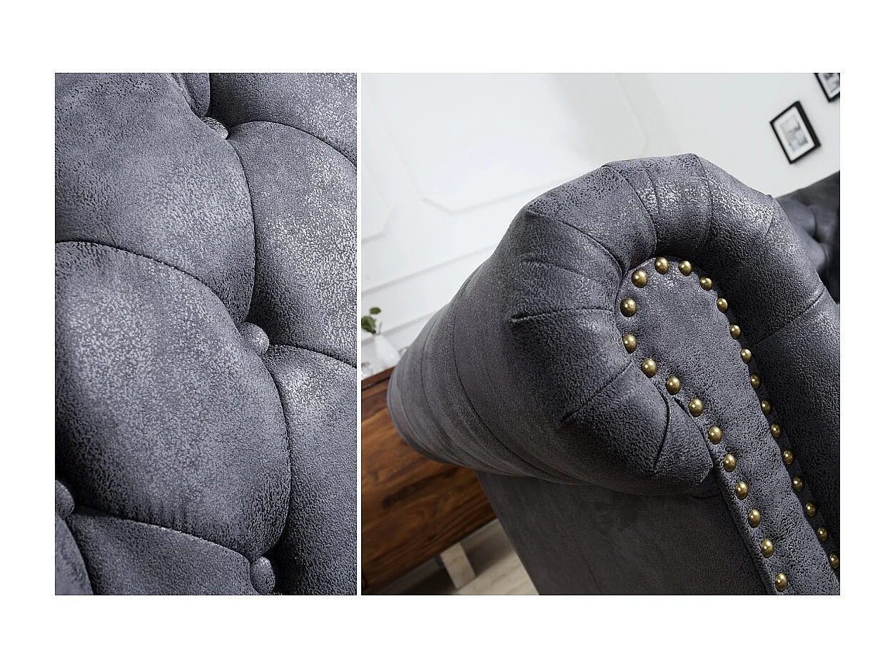 Canapé droit EDGAR – Gris bleuté – 2 places – Style baroque