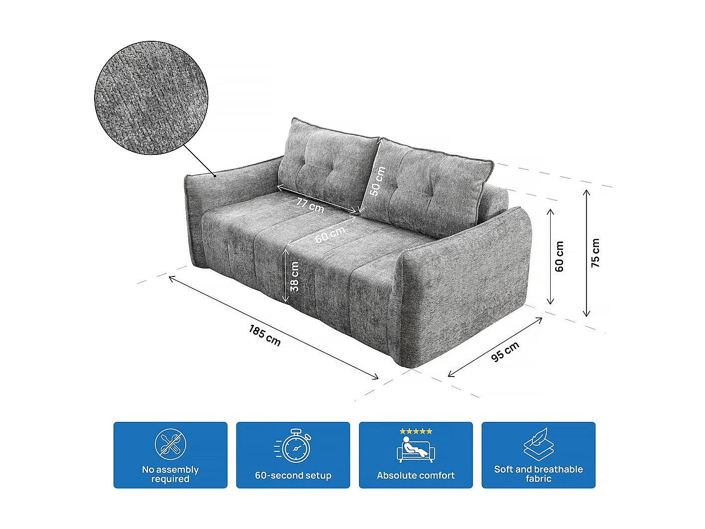 Canapé droit en tissu texturé "Silvano" - 3 places - Gris