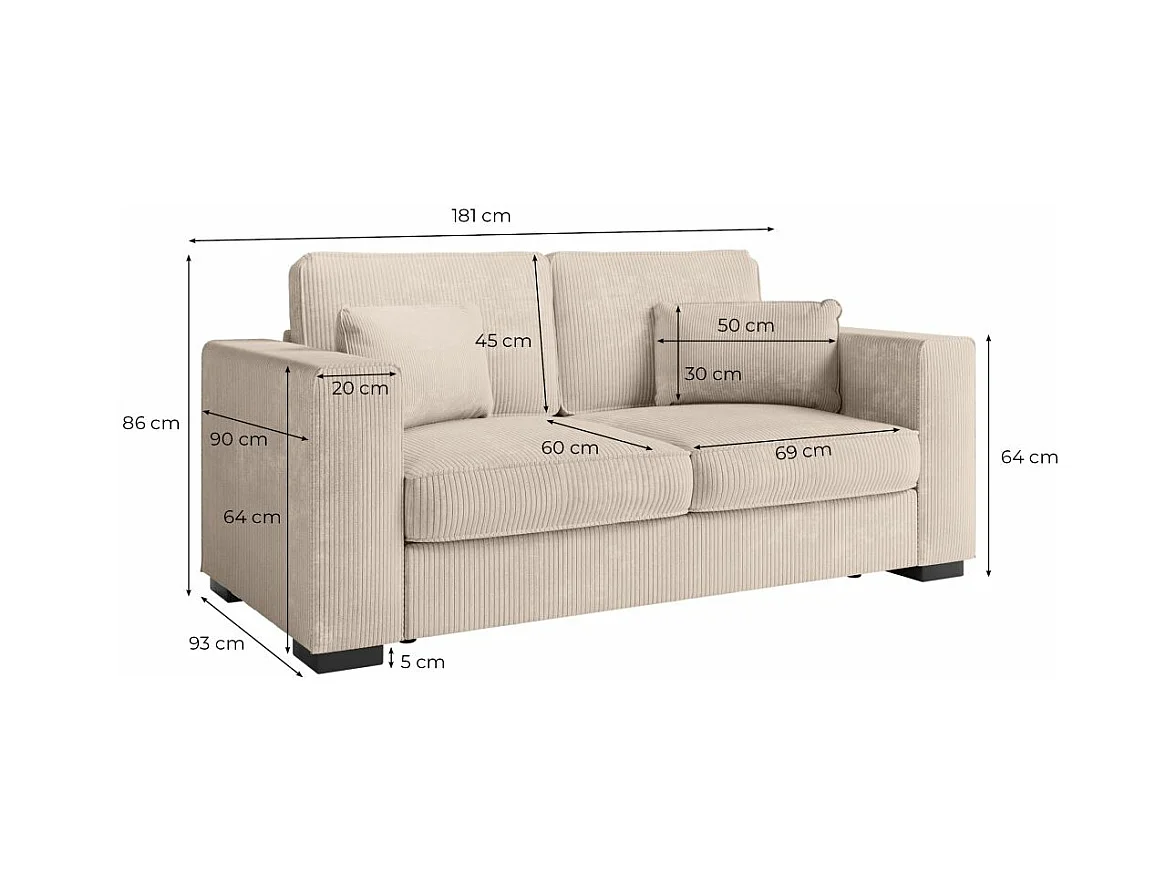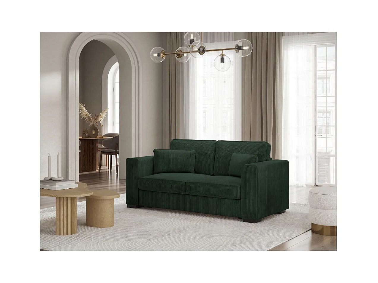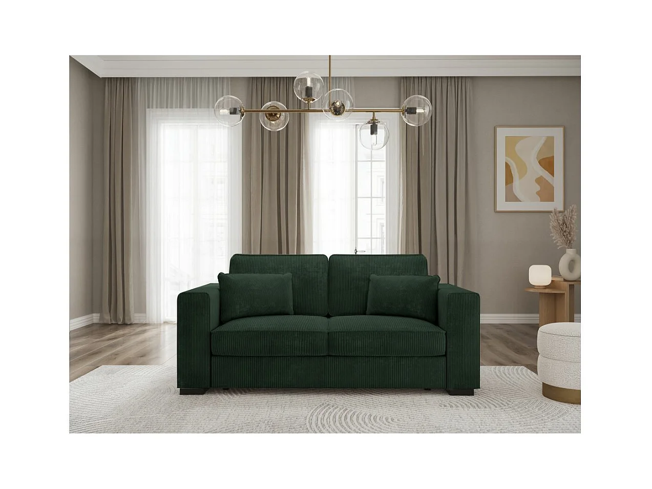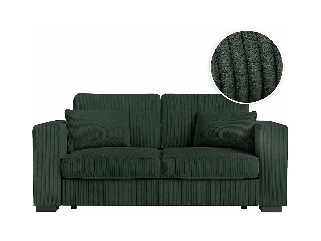 Canapé droit fixe 2 places Belami en velours côtelé - Vert foncé - L181 x P93 x H86cm - Loungitude
