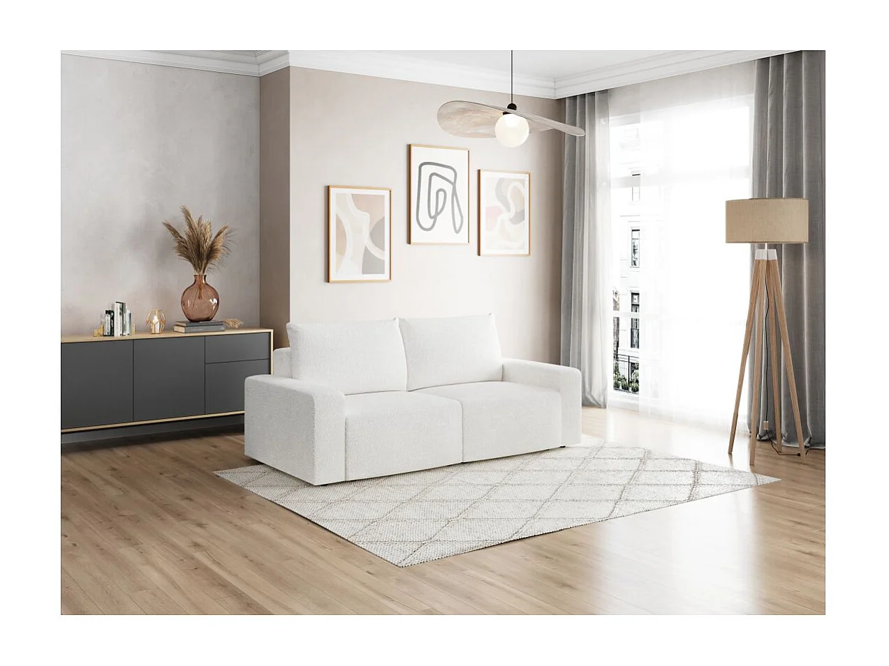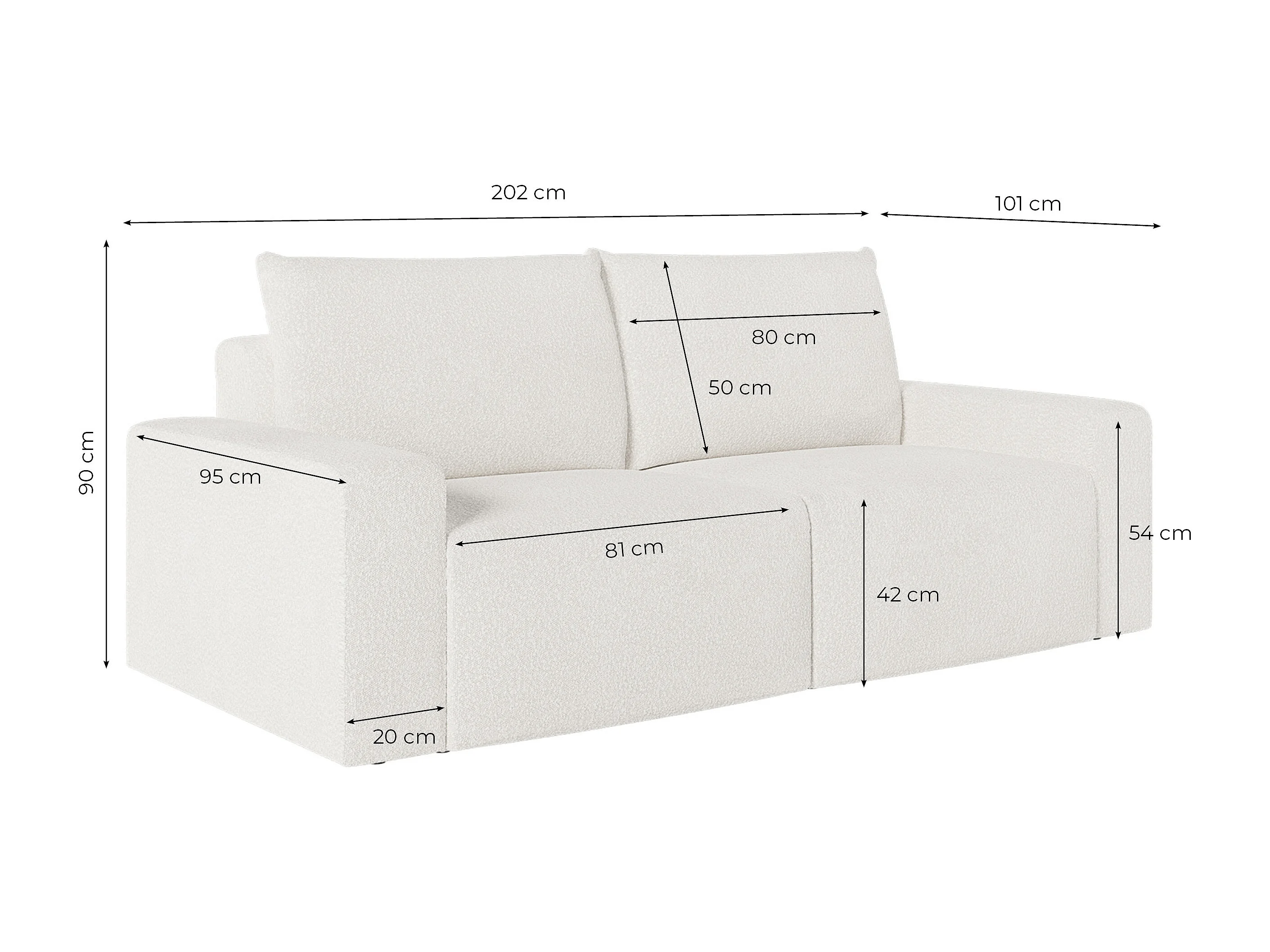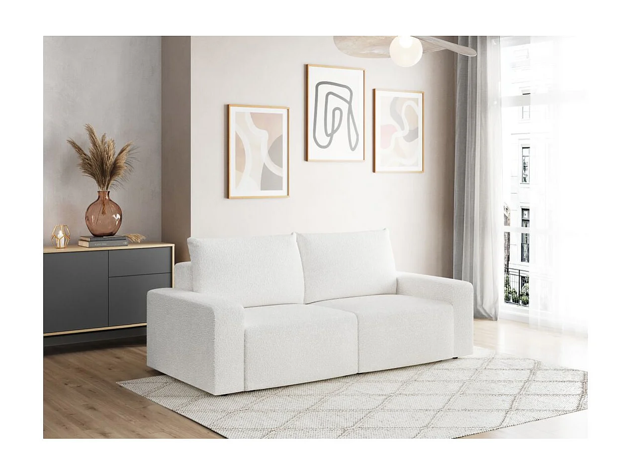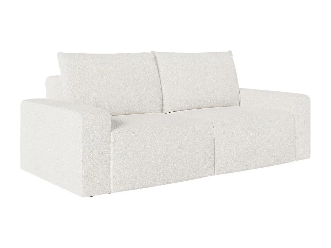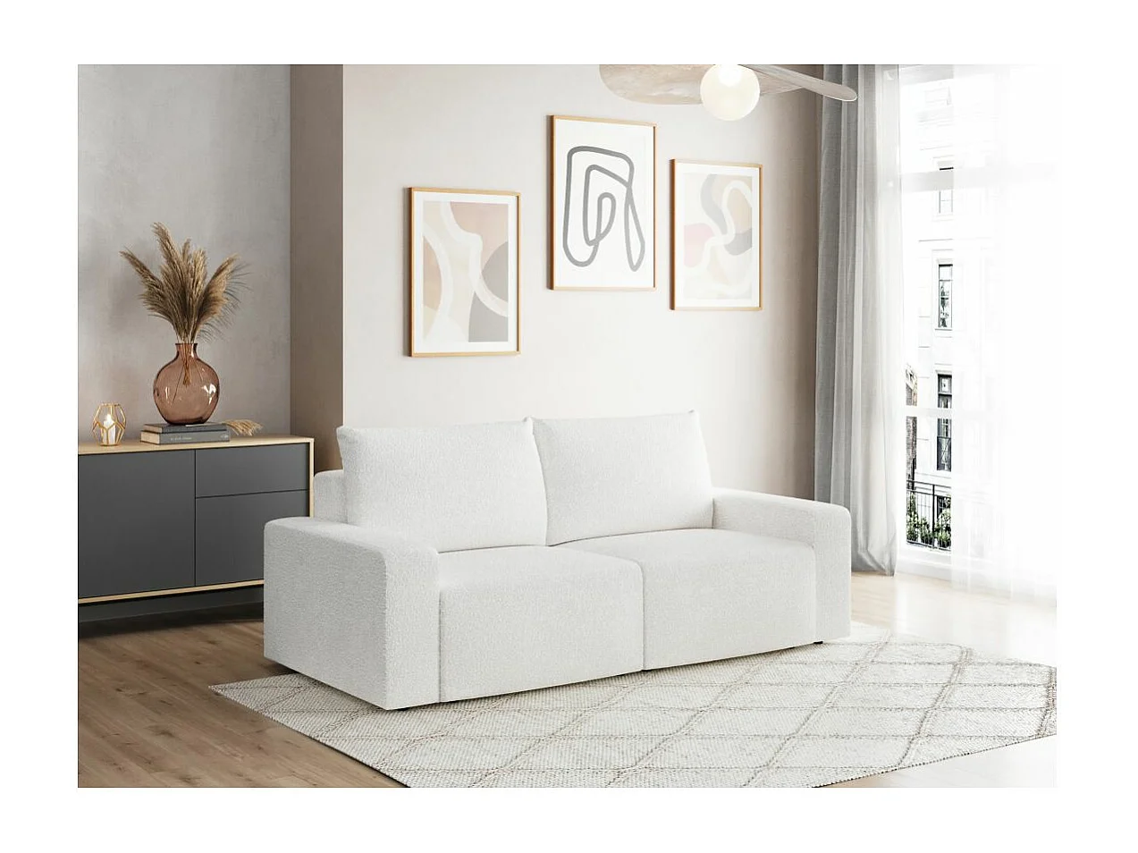 Canapé droit fixe 2 places ROMANE en tissu bouclette - Blanc