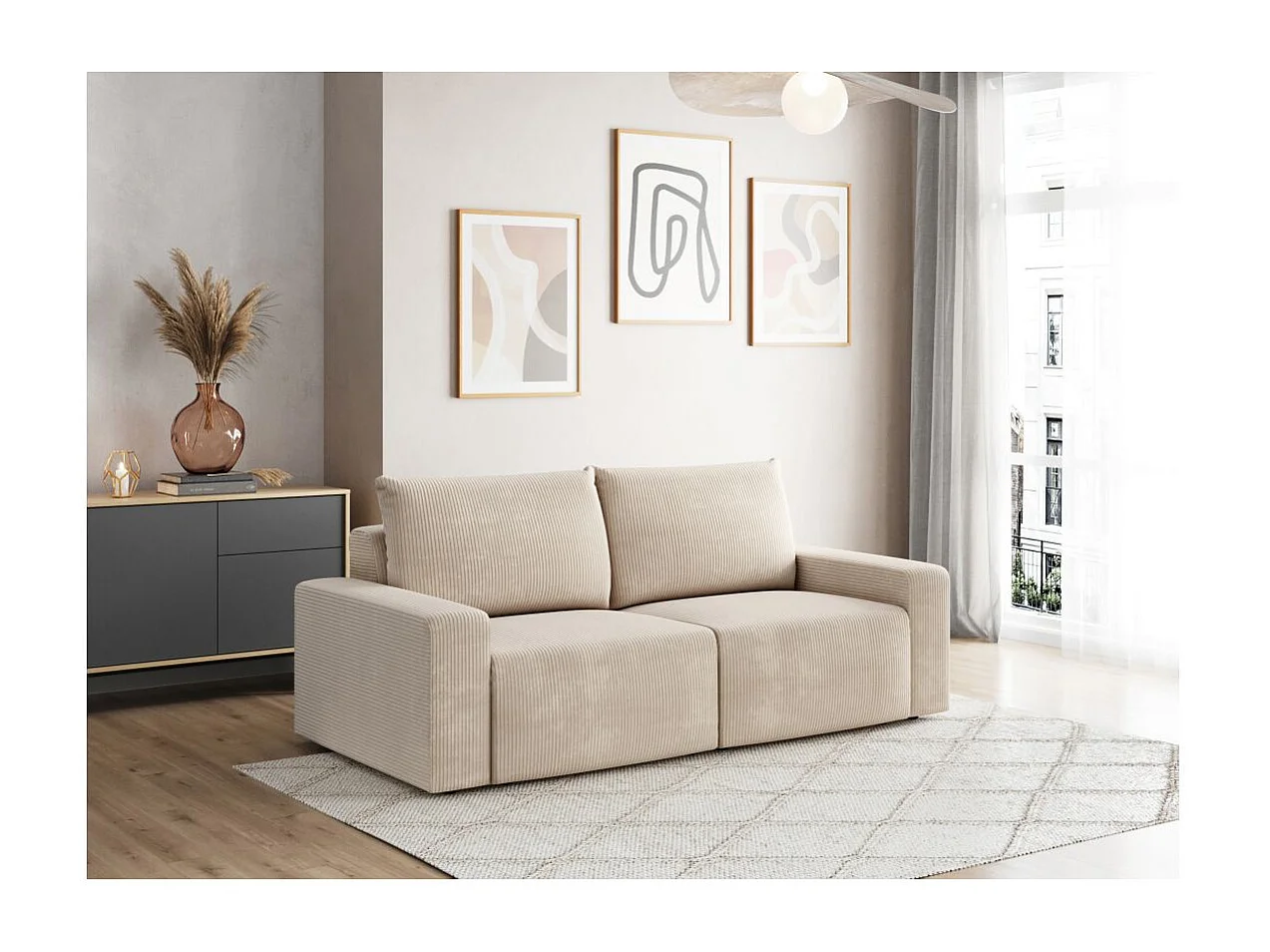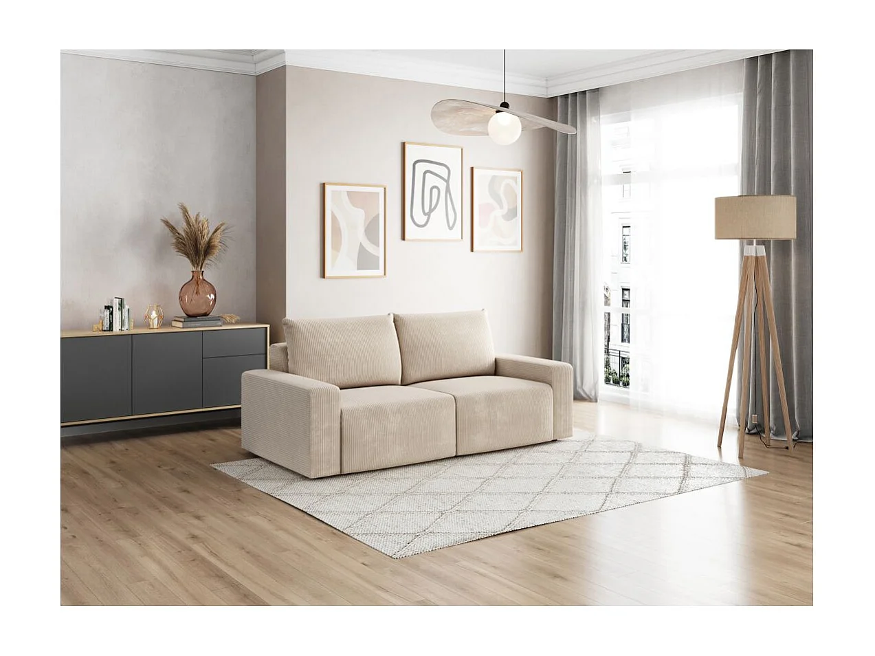 Canapé droit fixe 2 places ROMANE en velours côtelé - Beige