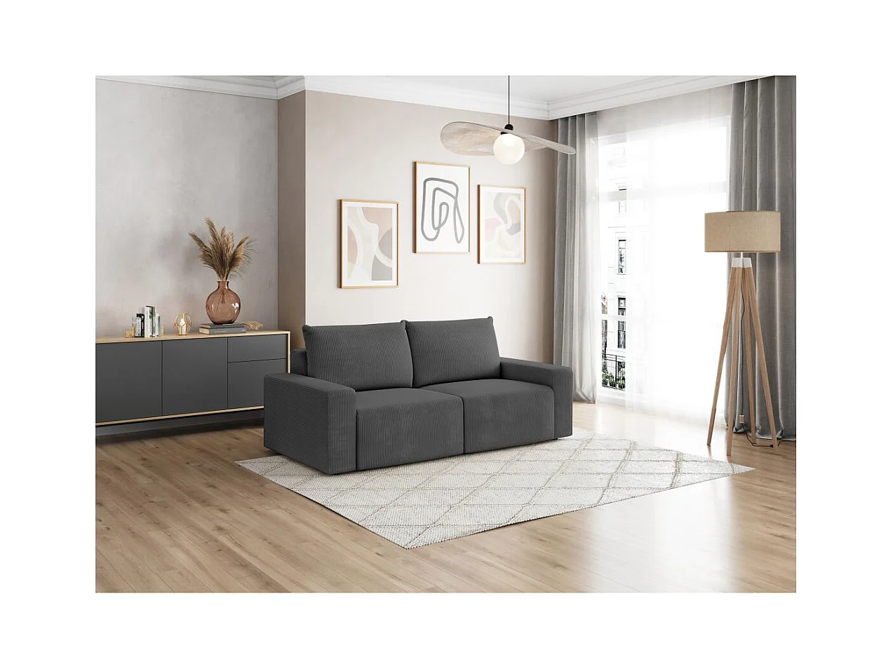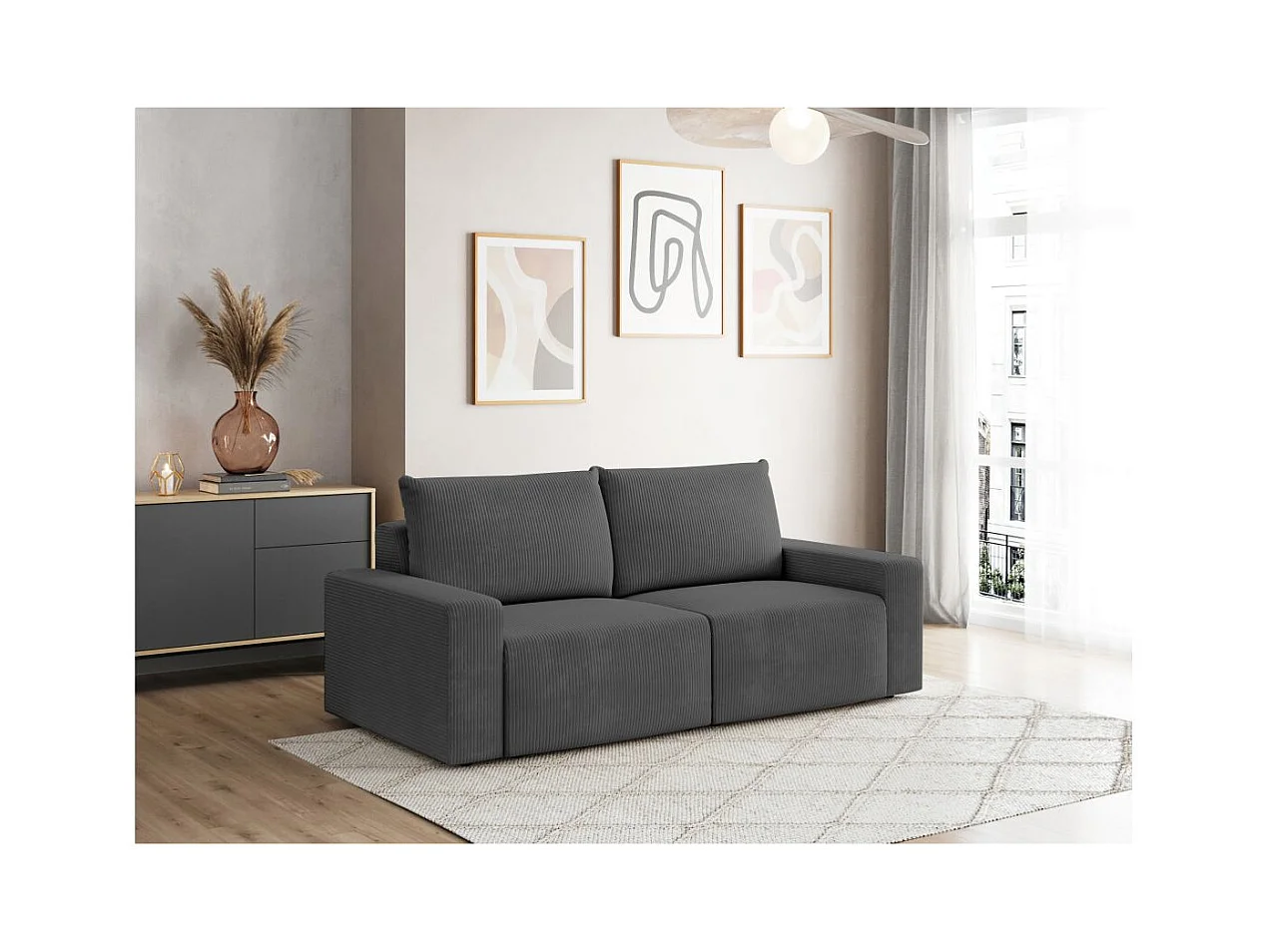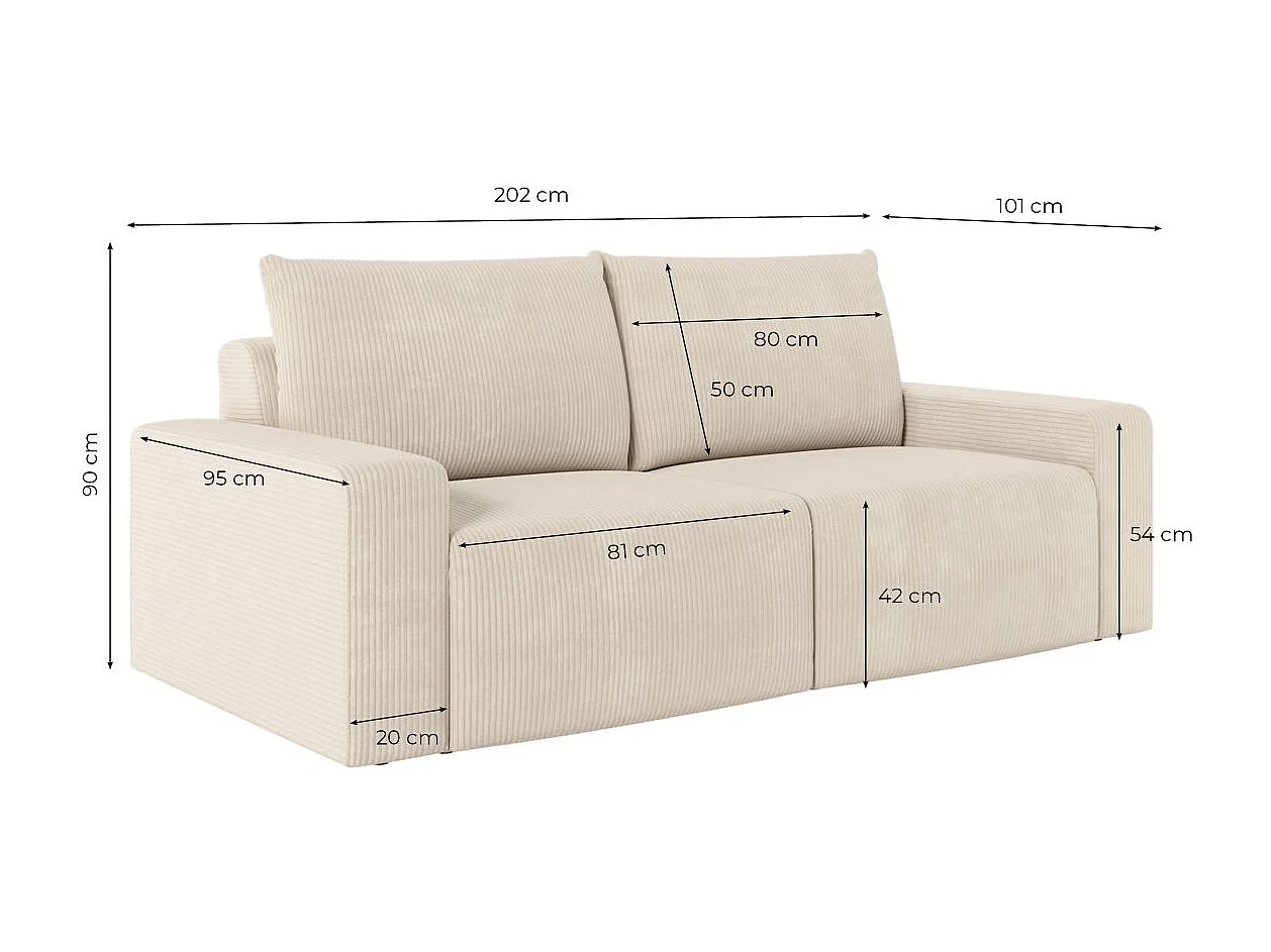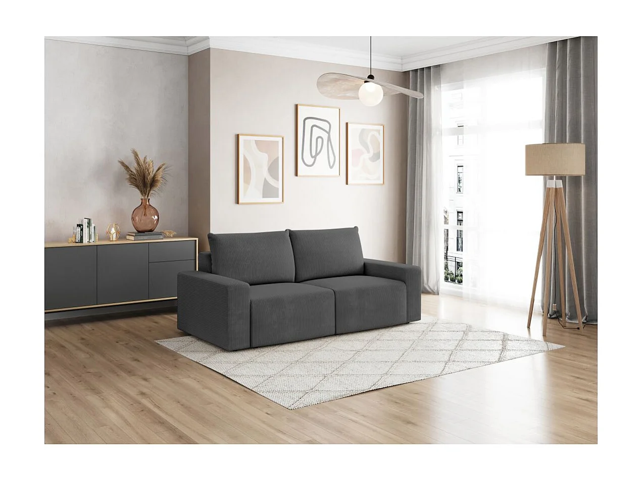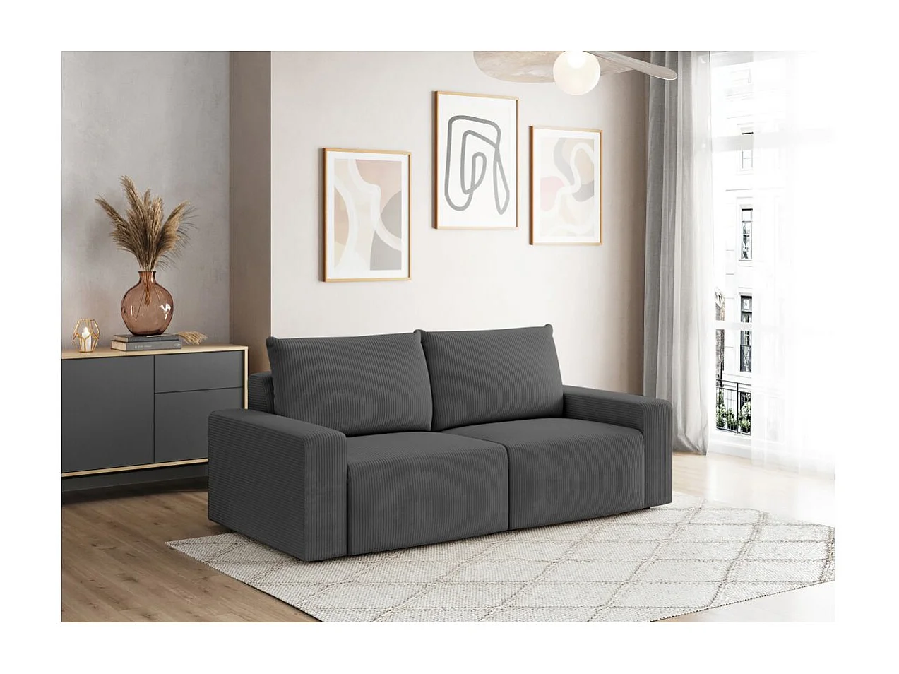 Canapé droit fixe 2 places ROMANE en velours côtelé - Gris