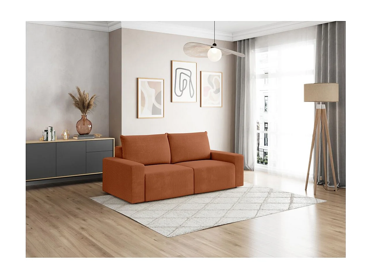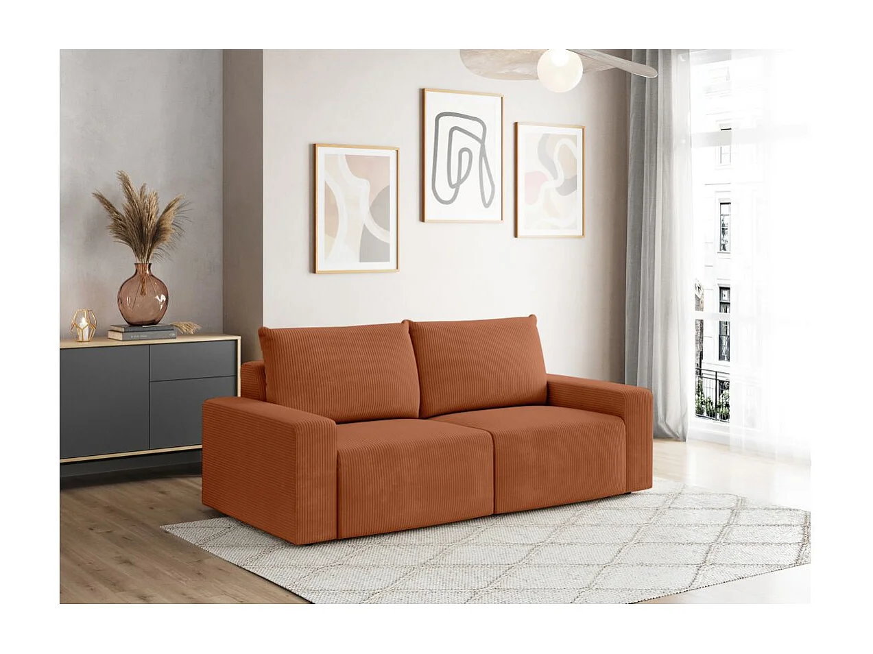 Canapé droit fixe 2 places ROMANE en velours côtelé - Terracotta