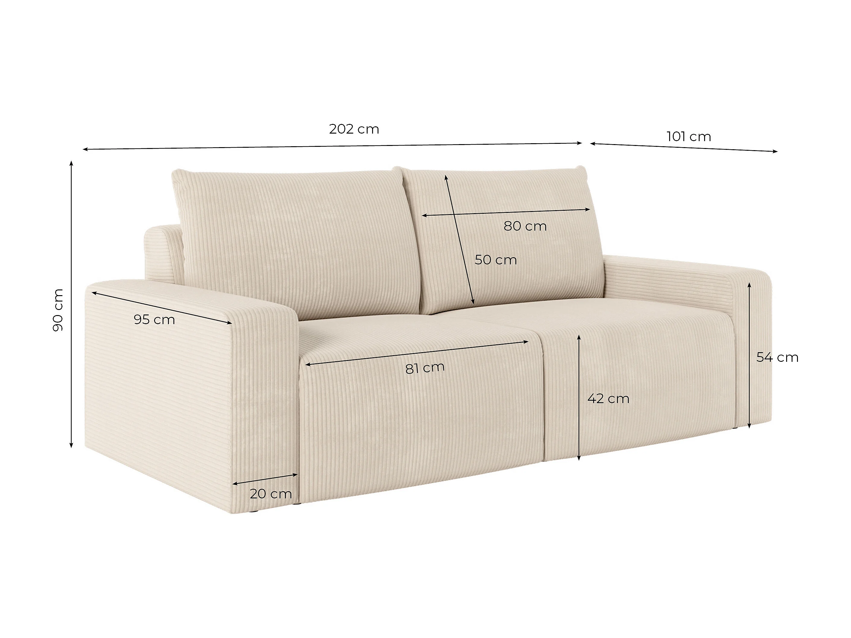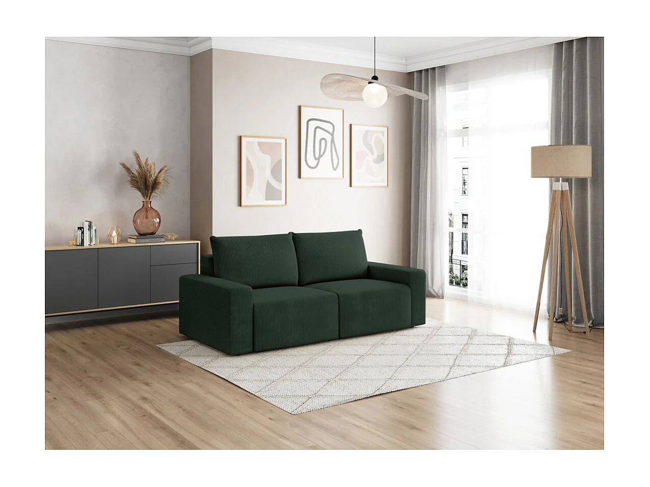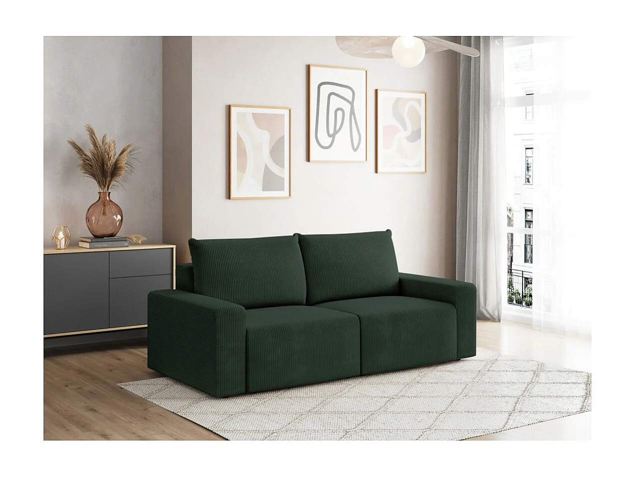Canapé droit fixe 2 places ROMANE en velours côtelé - Vert foncé