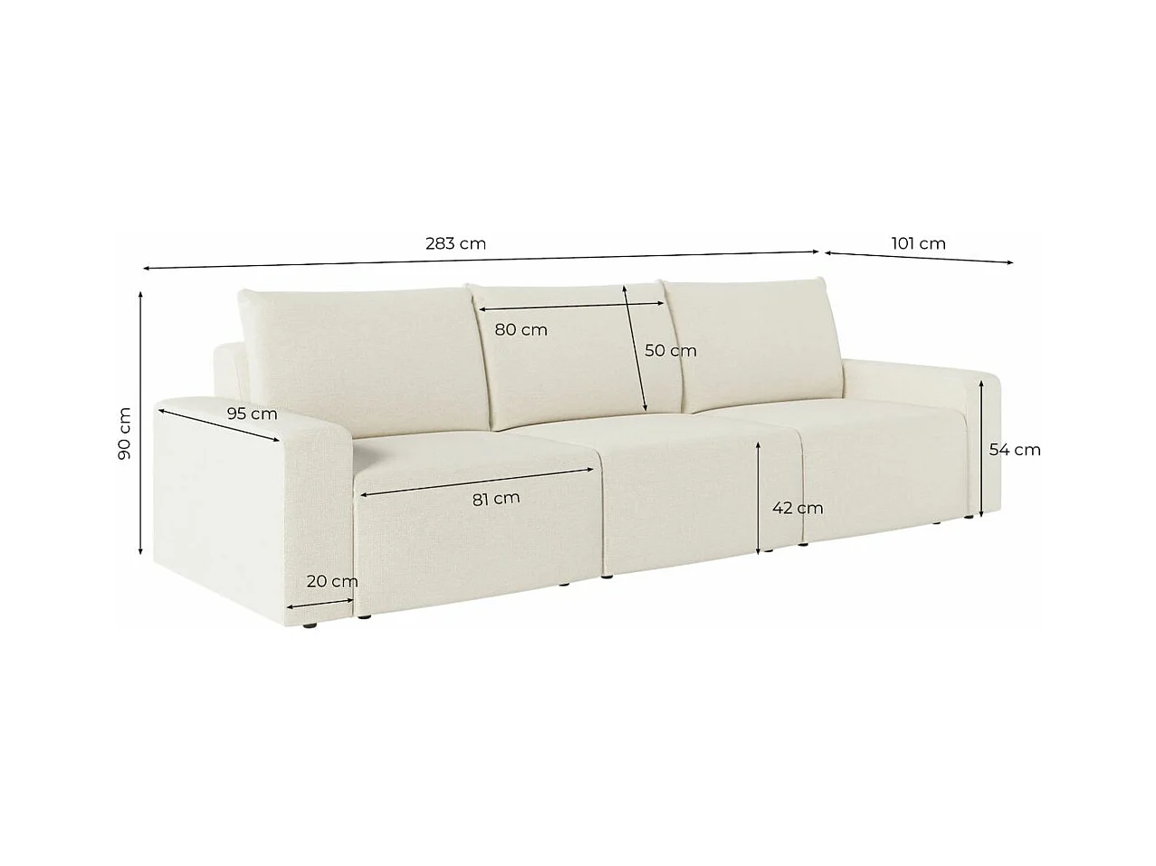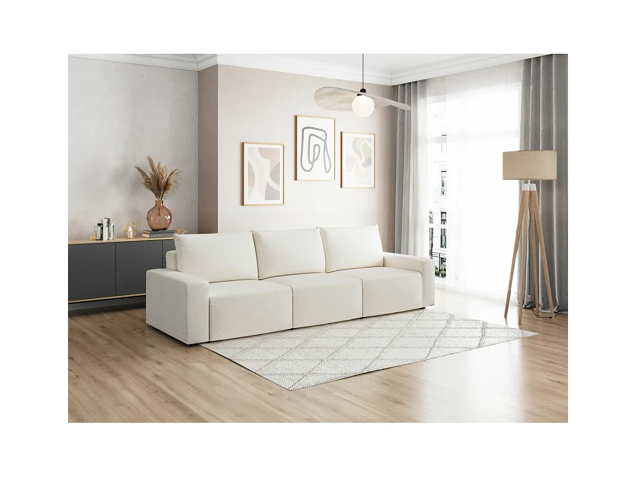 Canapé droit fixe 3 places ROMANE en tissu Easy Clean antitache - Beige