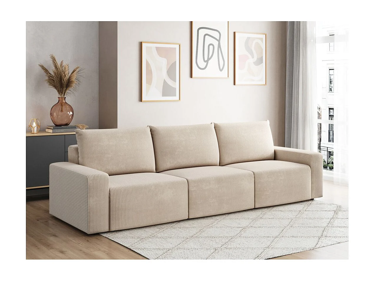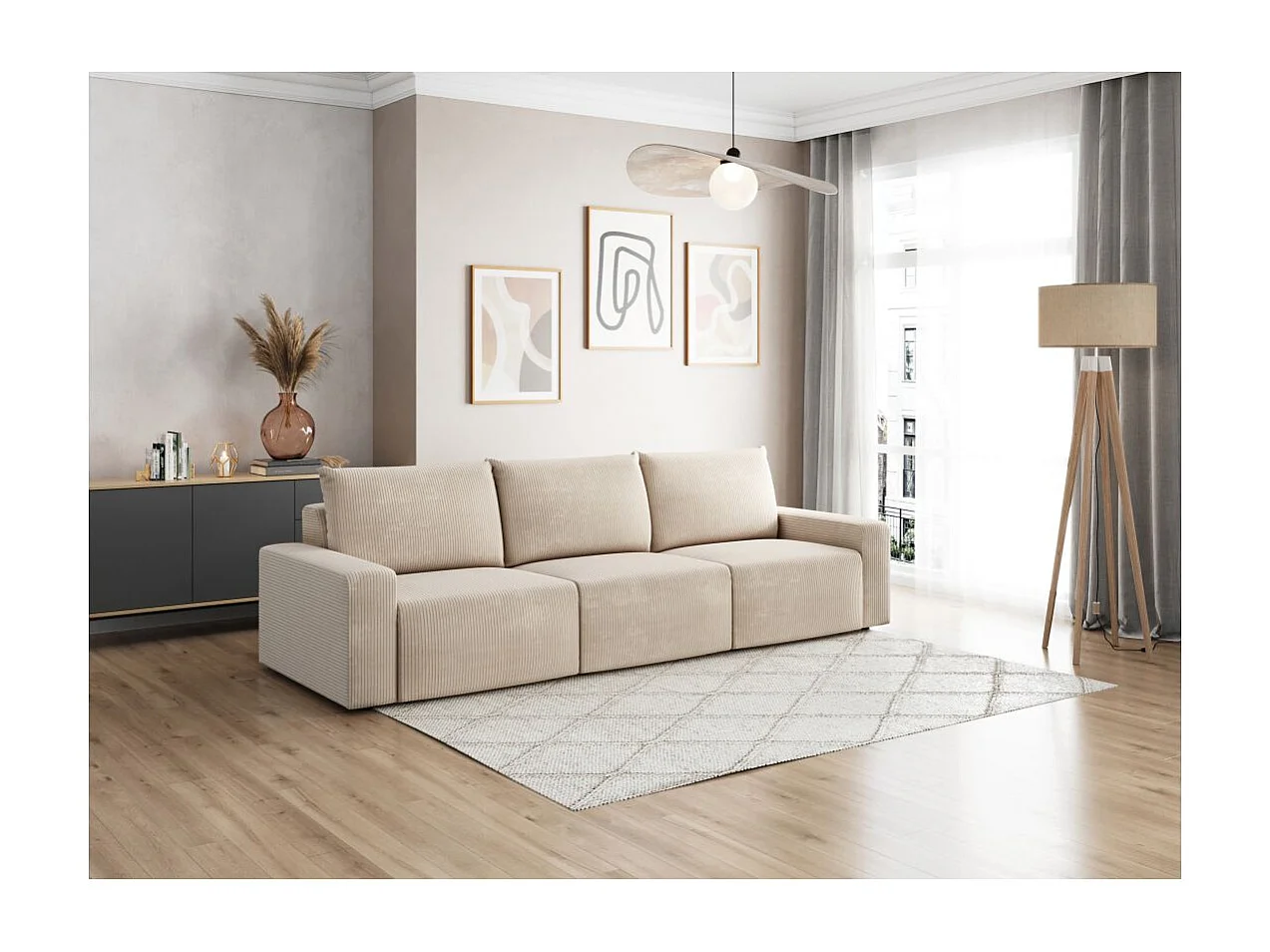 Canapé droit fixe 3 places ROMANE en velours côtelé - Beige