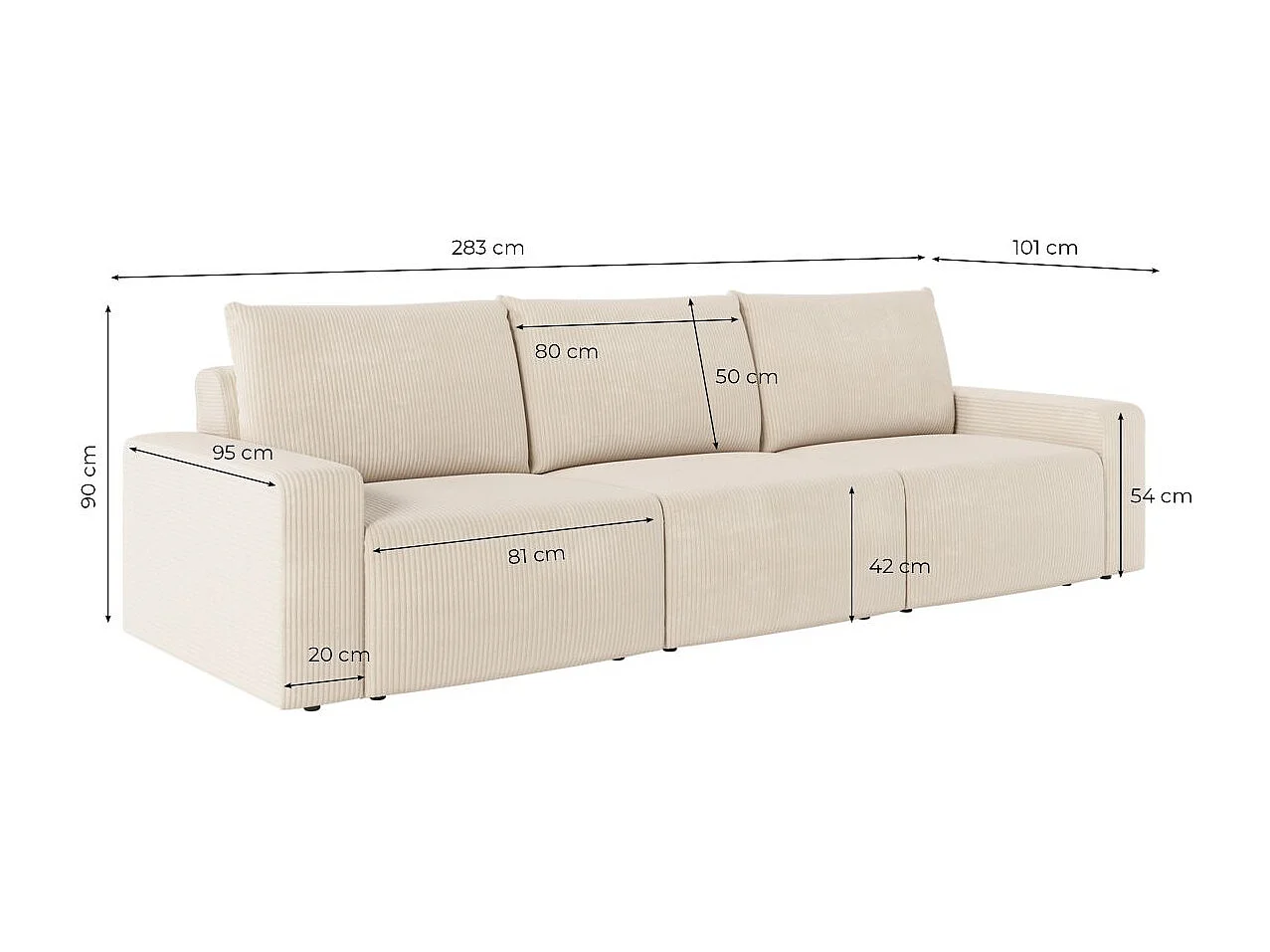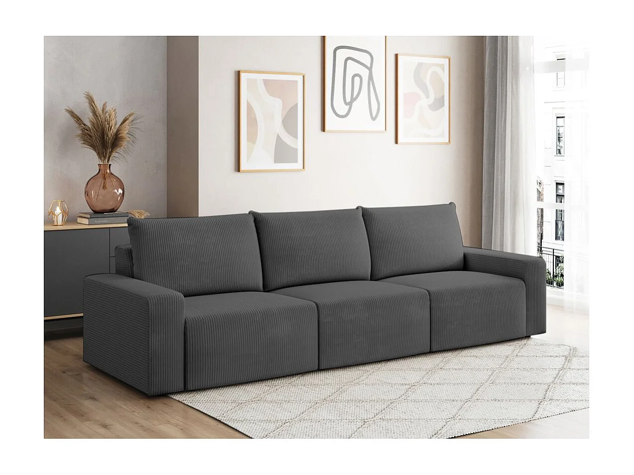 Canapé droit fixe 3 places ROMANE en velours côtelé - Gris