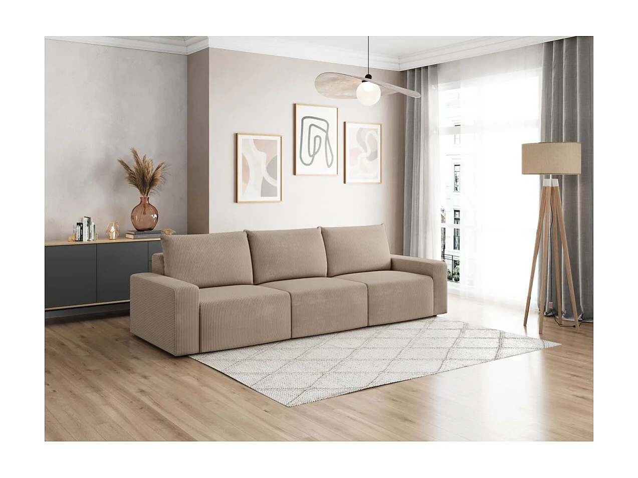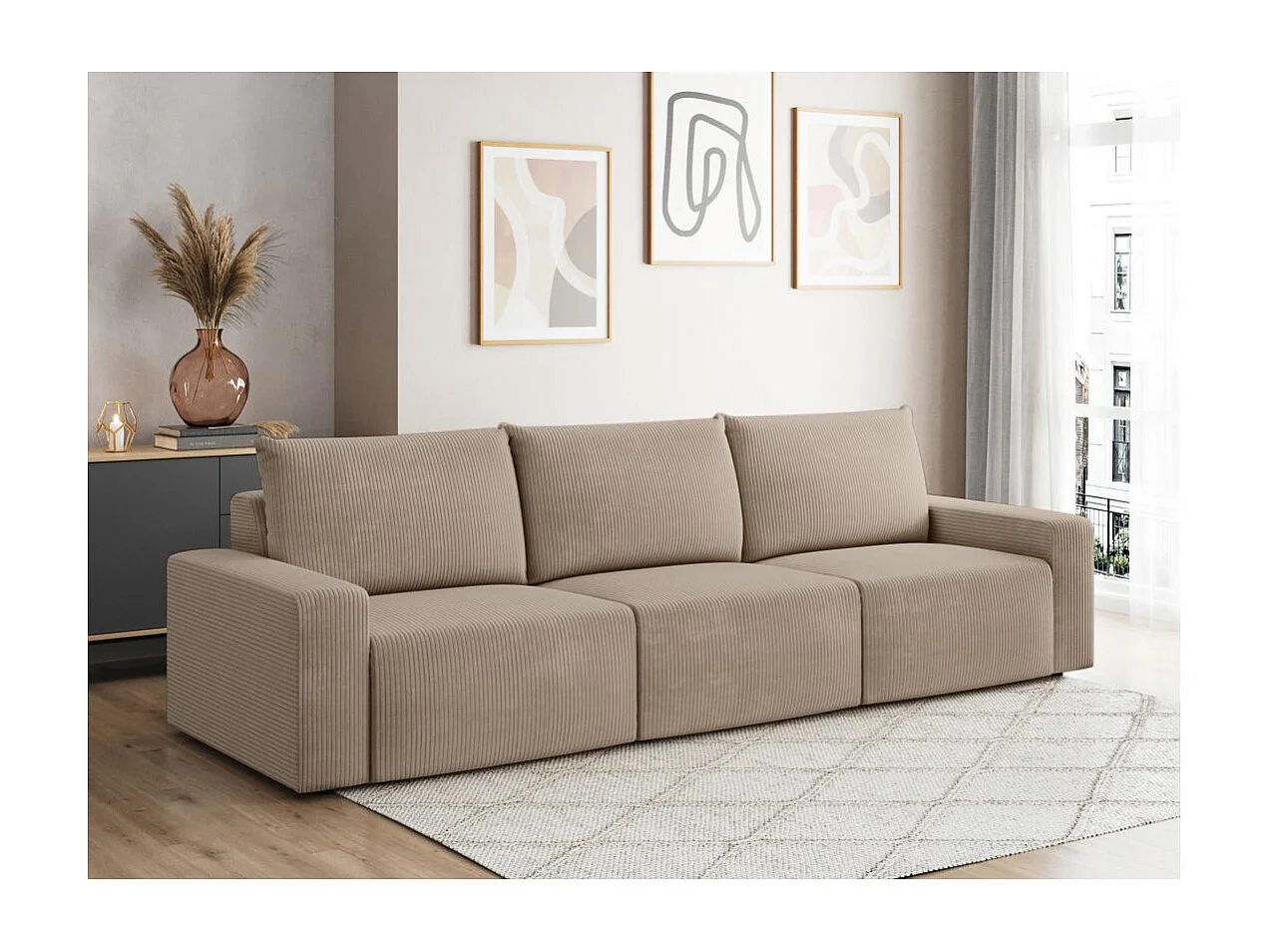 Canapé droit fixe 3 places ROMANE en velours côtelé - Taupe