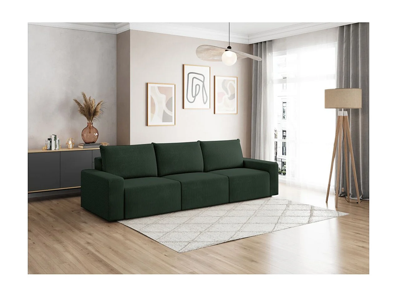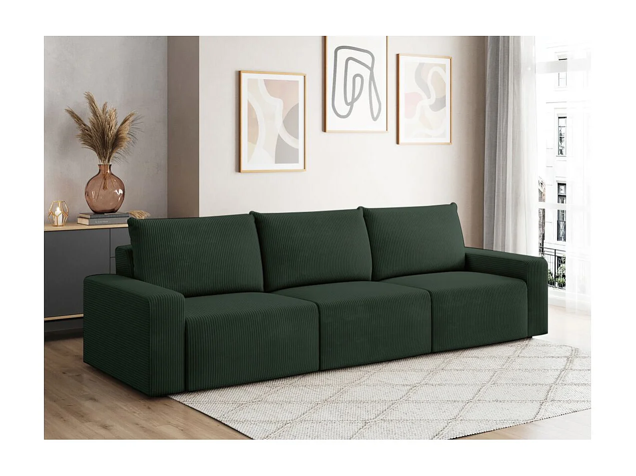 Canapé droit fixe 3 places ROMANE en velours côtelé - Vert foncé