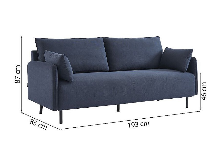 Canapé droit fixe tissu 3 places bleu nuit SÉRÉNITE