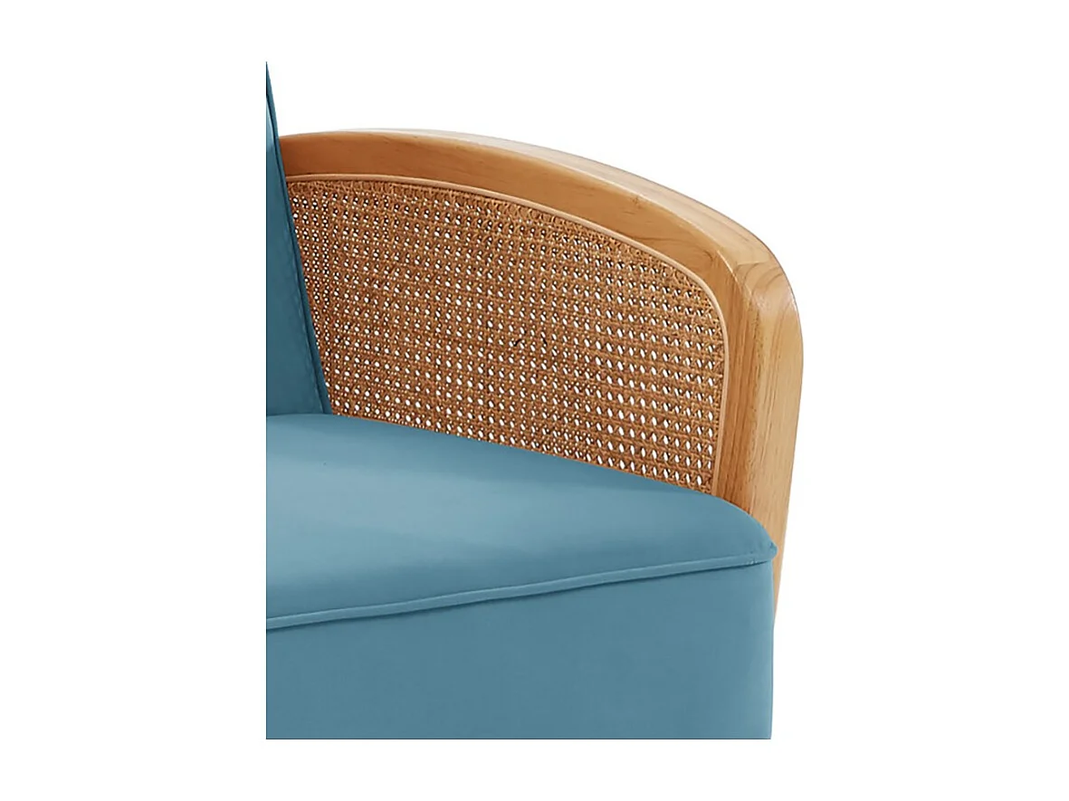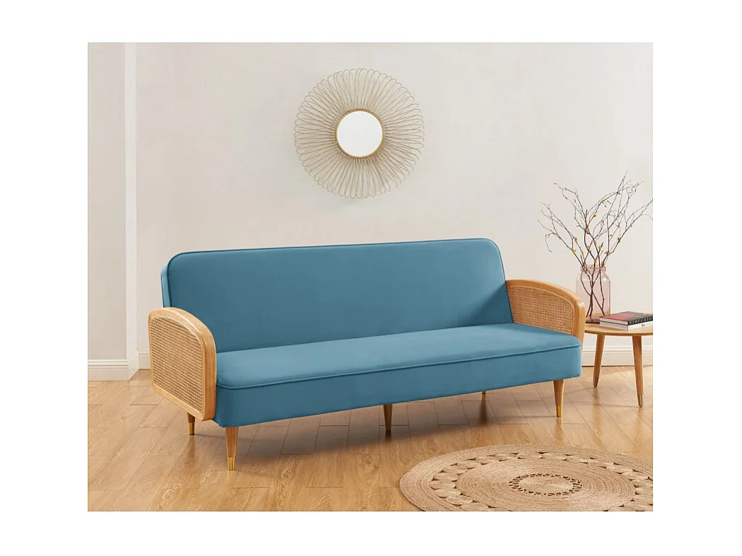 Canapé droit LEA convertible 3 places cannage et velours bleu