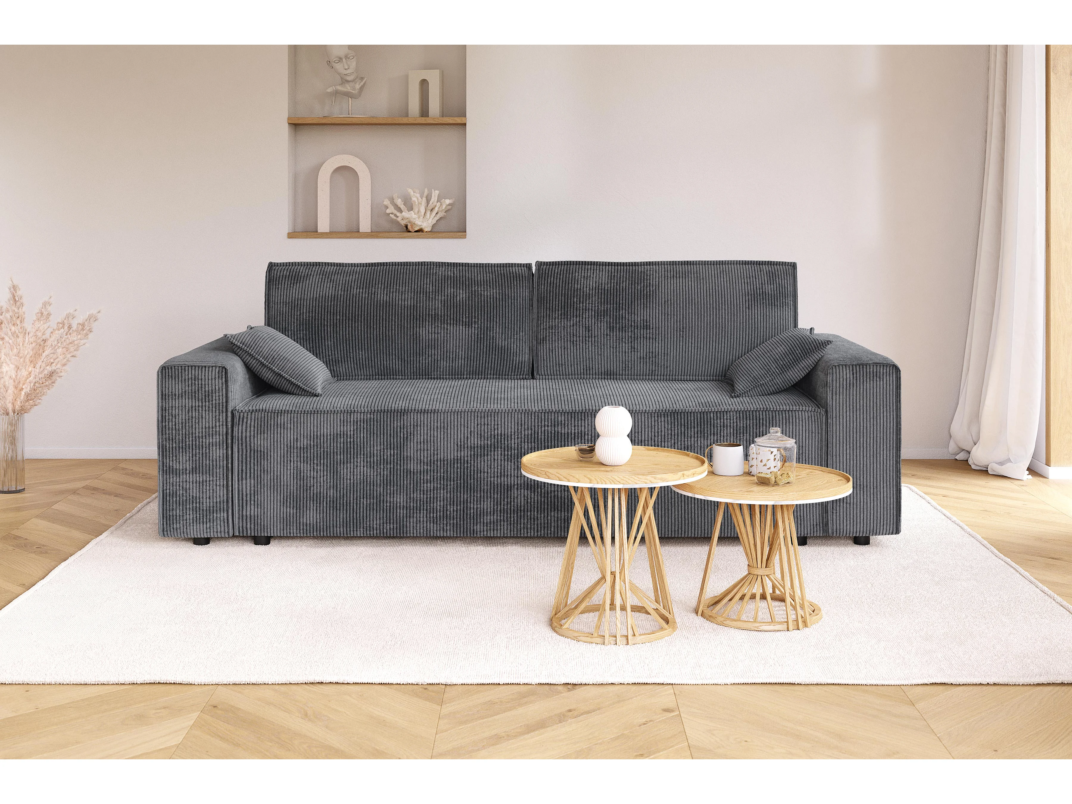 Canapé droit MARIUS convertible velours côtelé gris souris