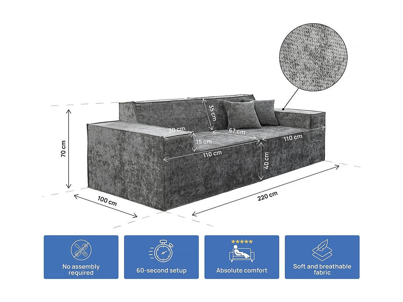 Canapé droit modulable en tissu texturé "Lusso" - 3 places - Gris