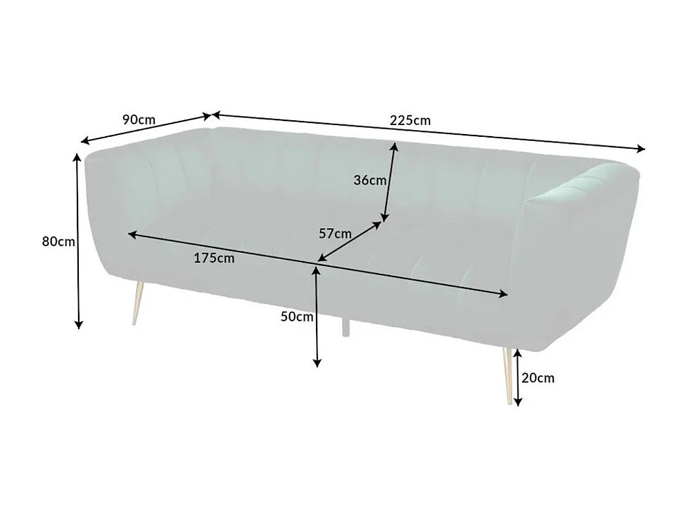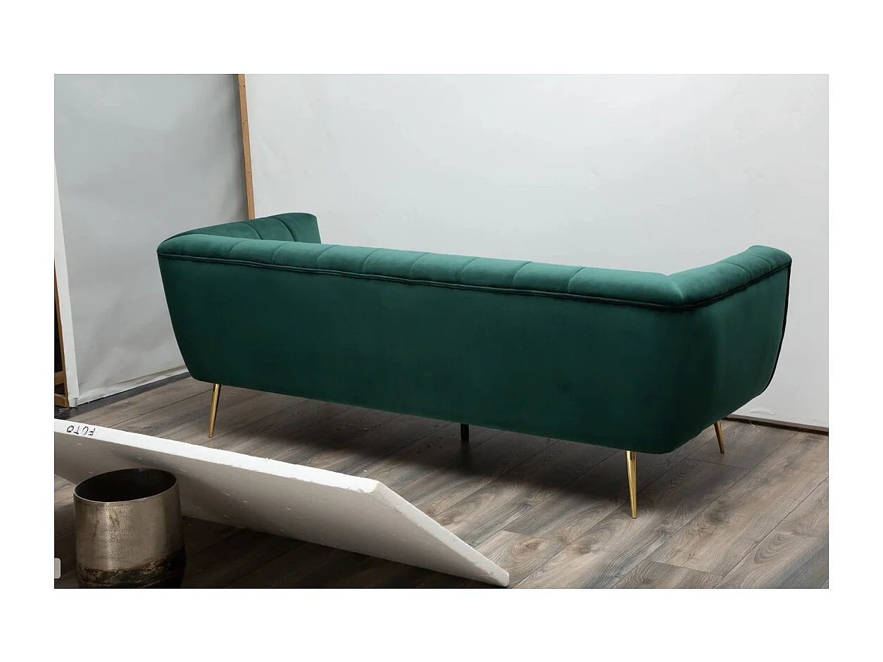 Canapé droit NORA vert émeraude – Canapé chic en velours avec pieds en métal