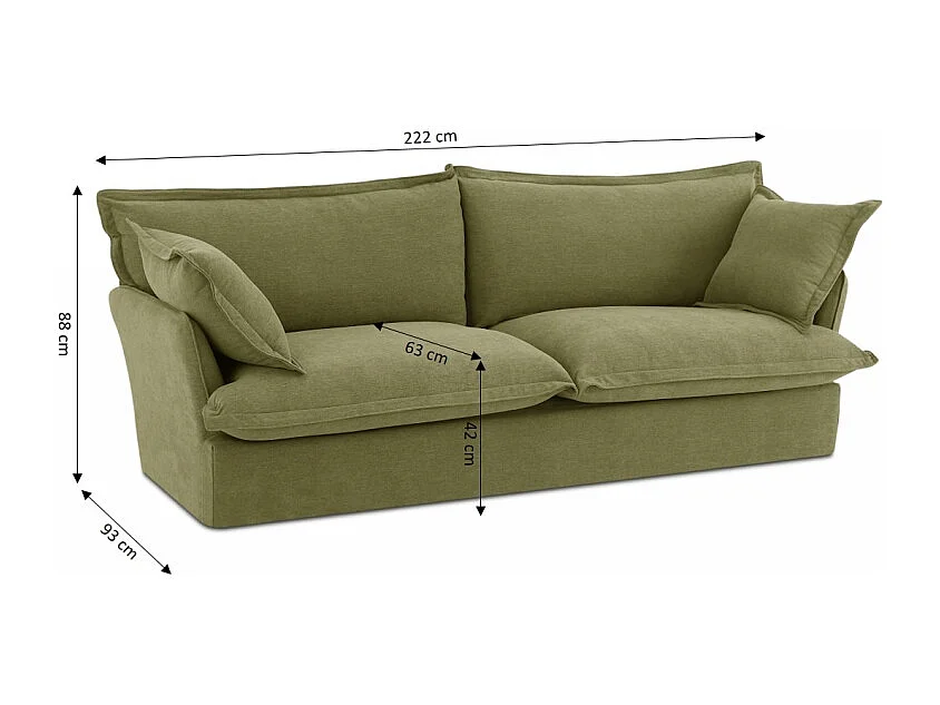Canapé droit tissu déhoussable 3 places vert VELORA