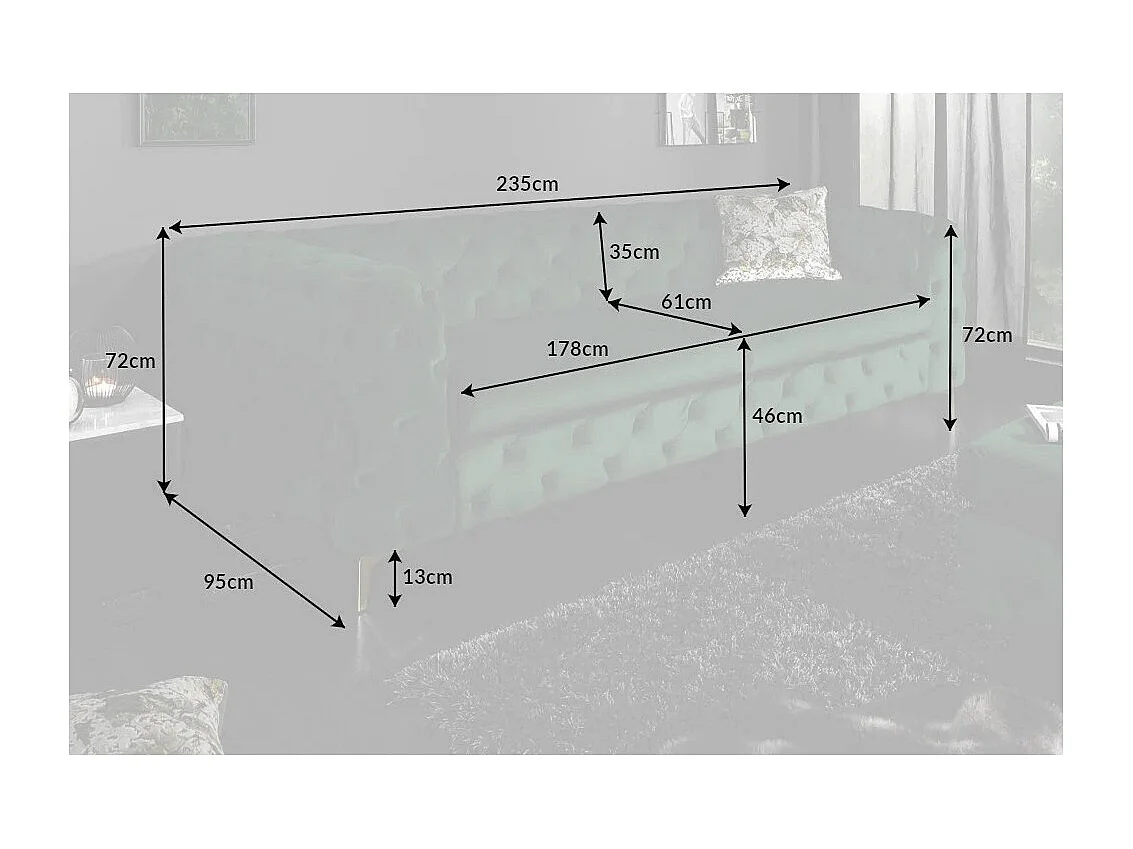 Canapé droit VELENA vert émeraude – Canapé baroque en velours avec pieds métal dorés