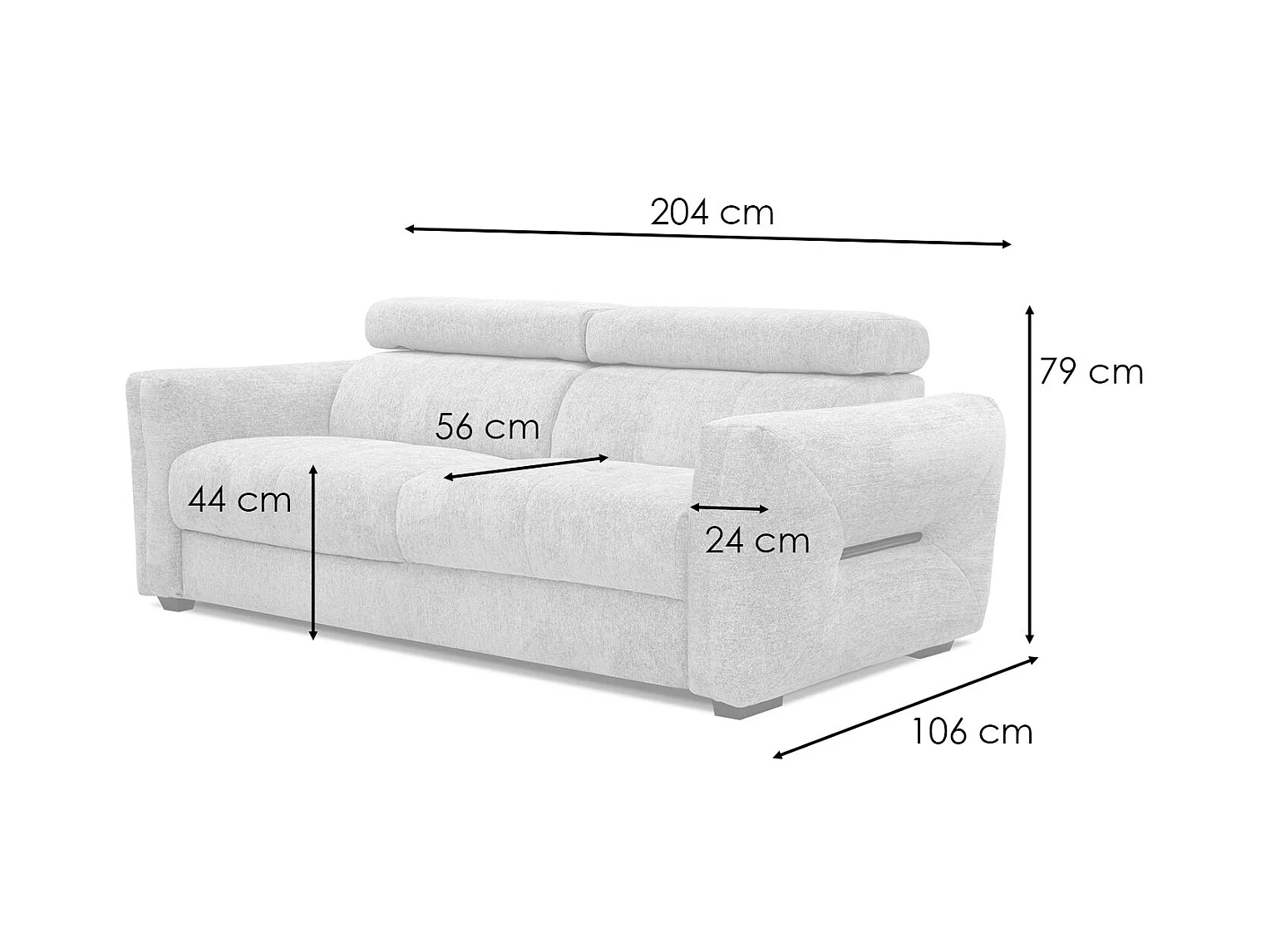 Canapé droit XXL 3 places tissu gris clair - CALVERA