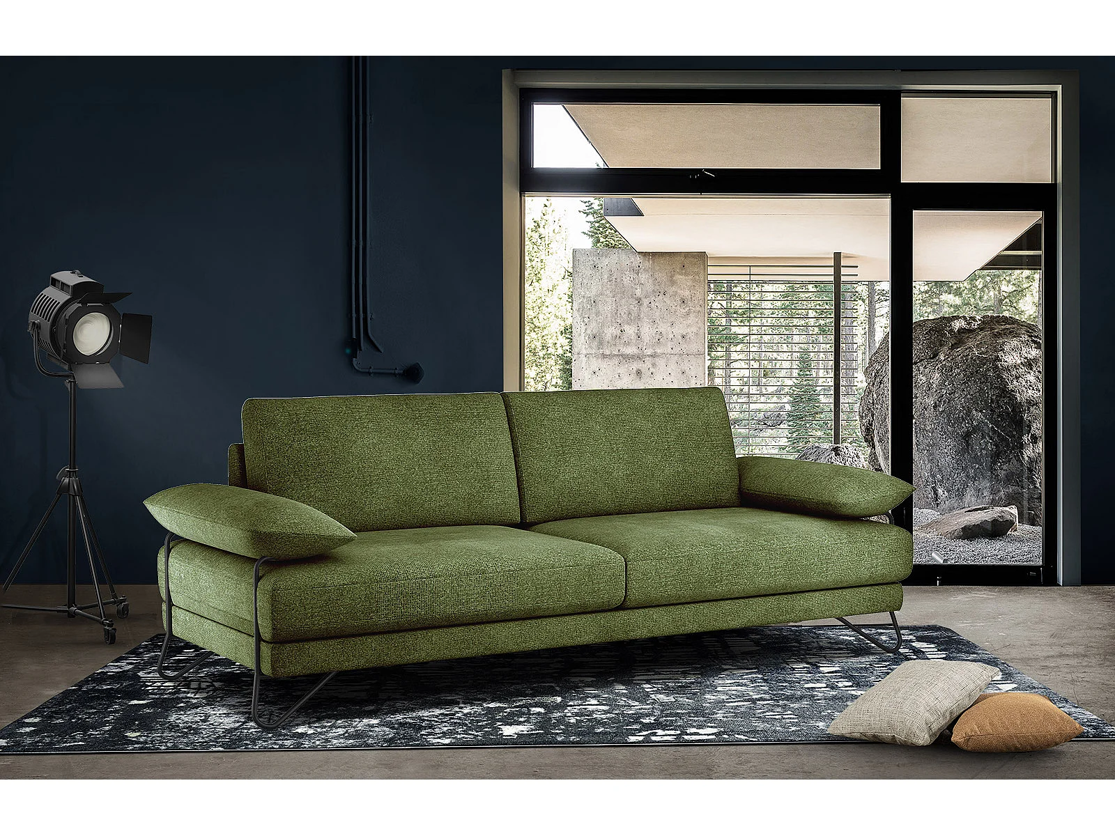 Canapé droit XXL 3 places tissu vert foncé - LORI