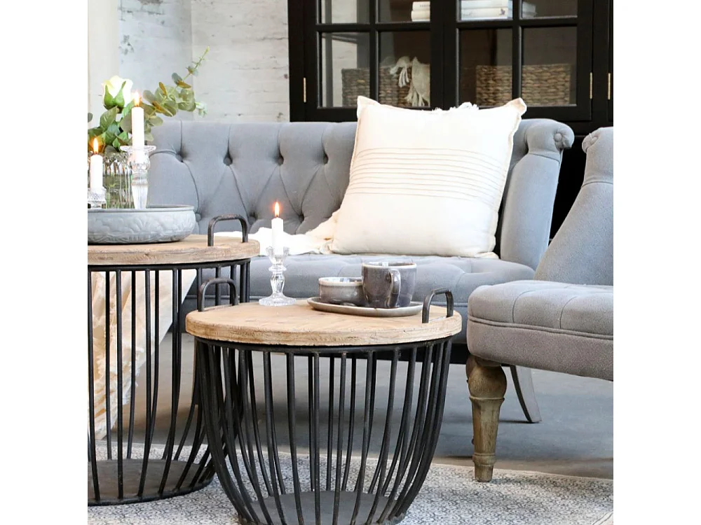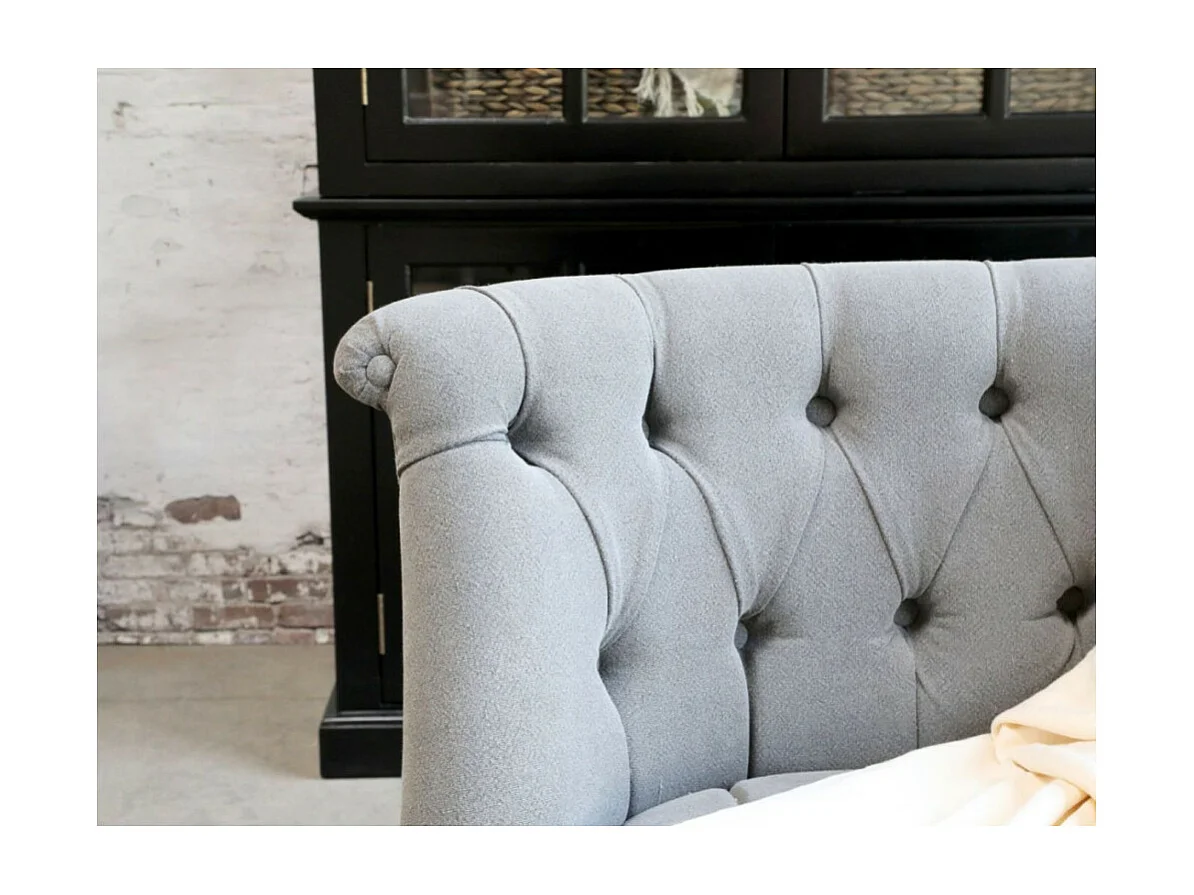 Canapé en bois de chêne et lin gris 110 x 55 x 75 cm