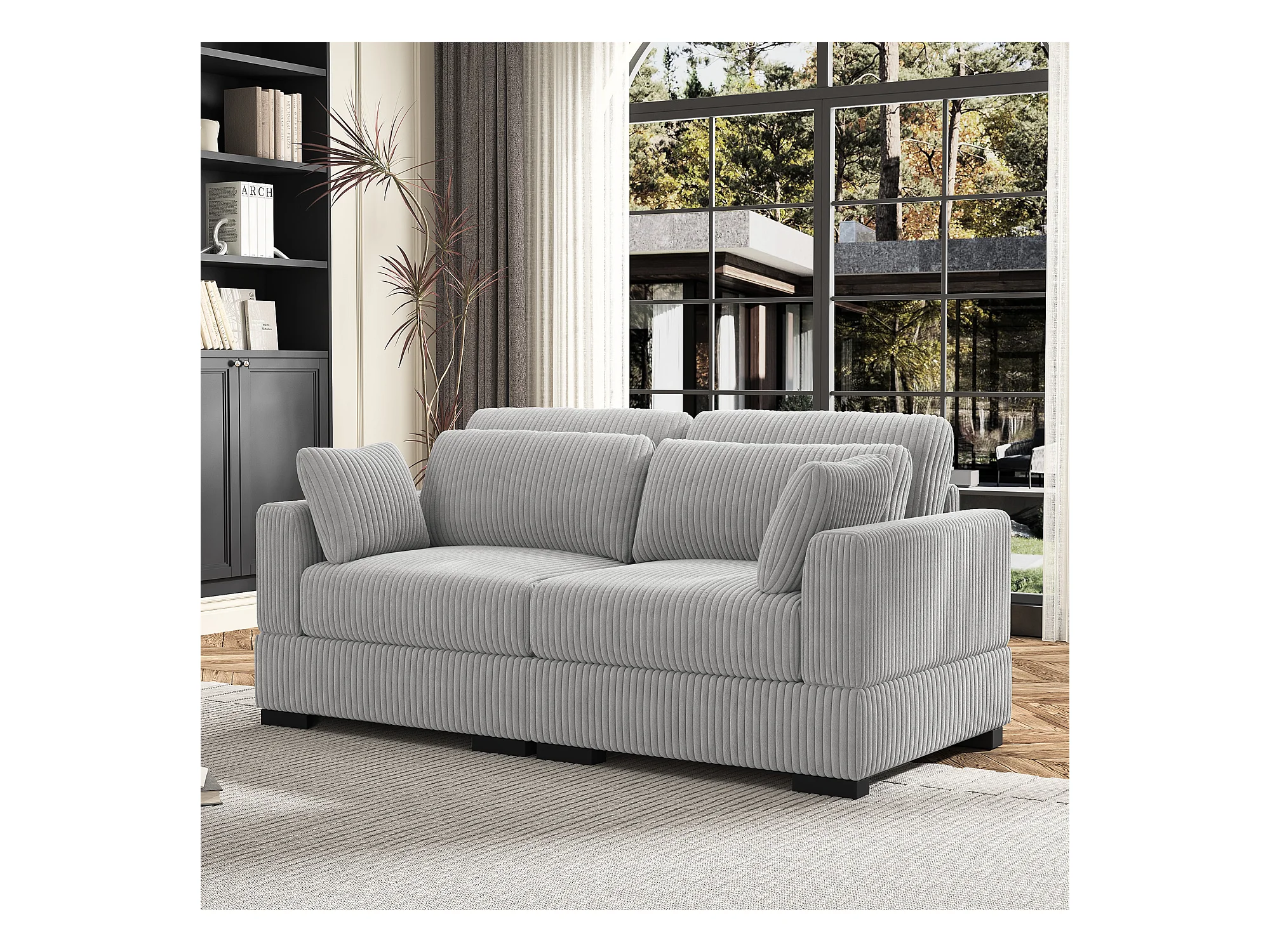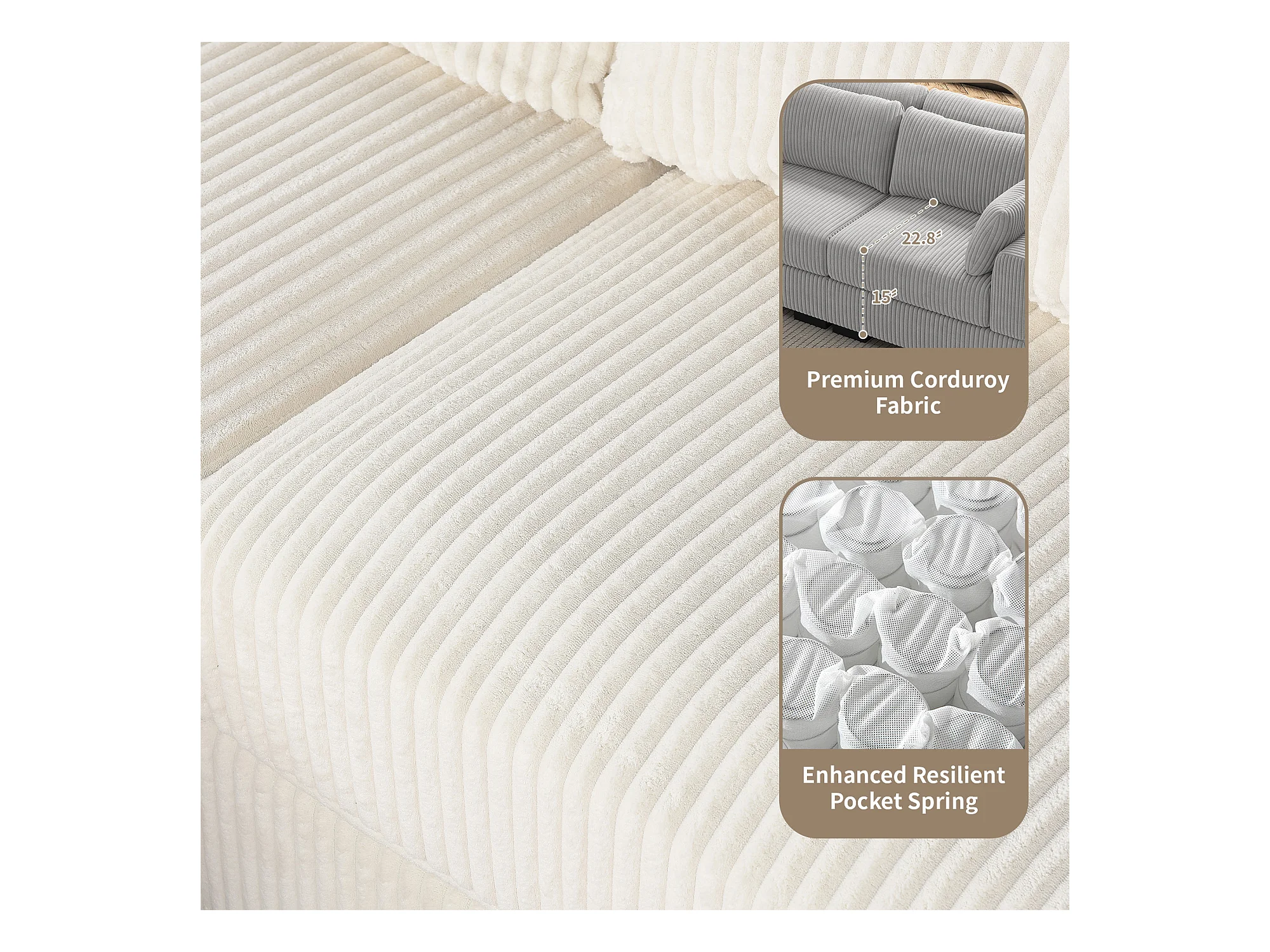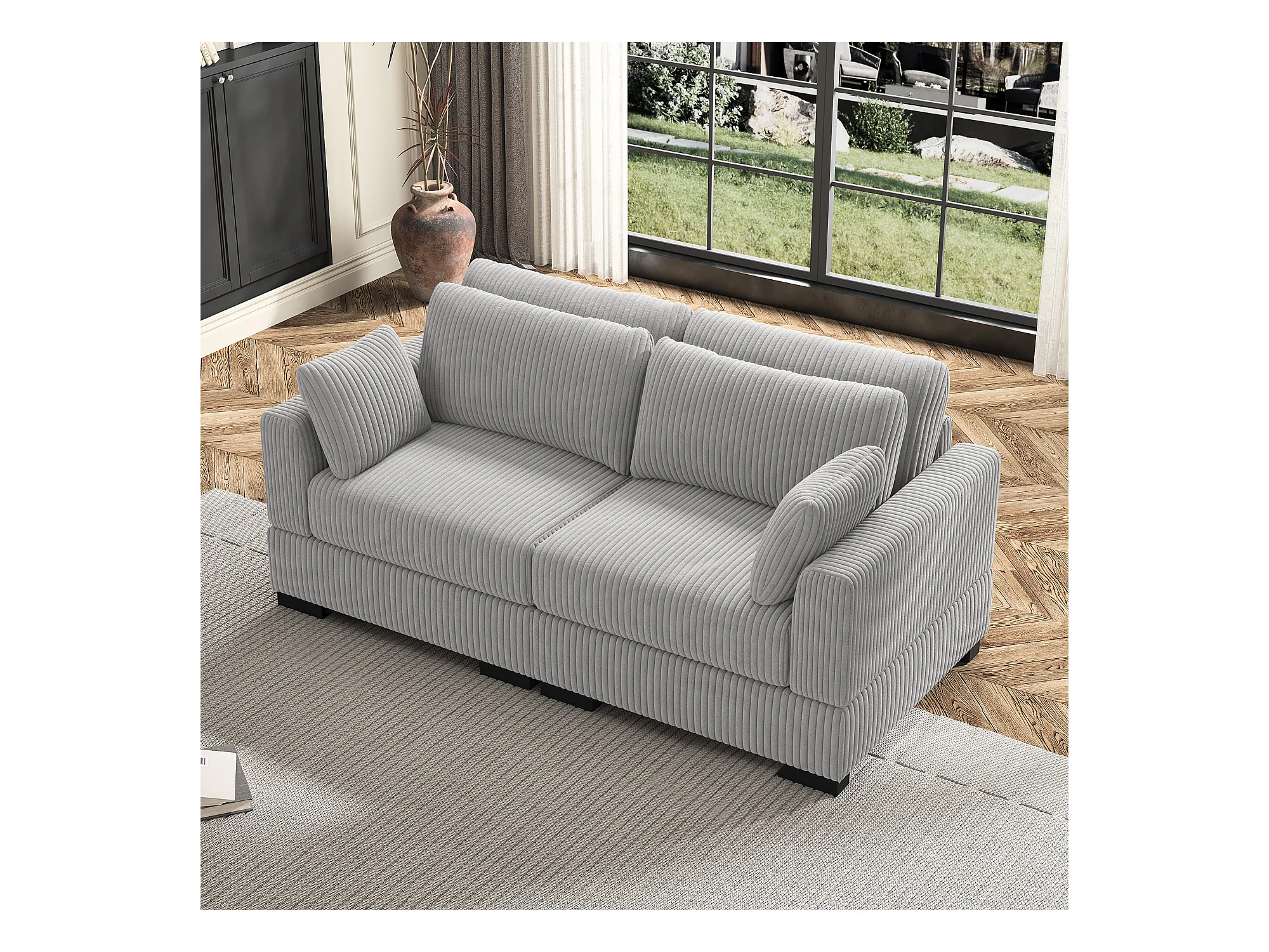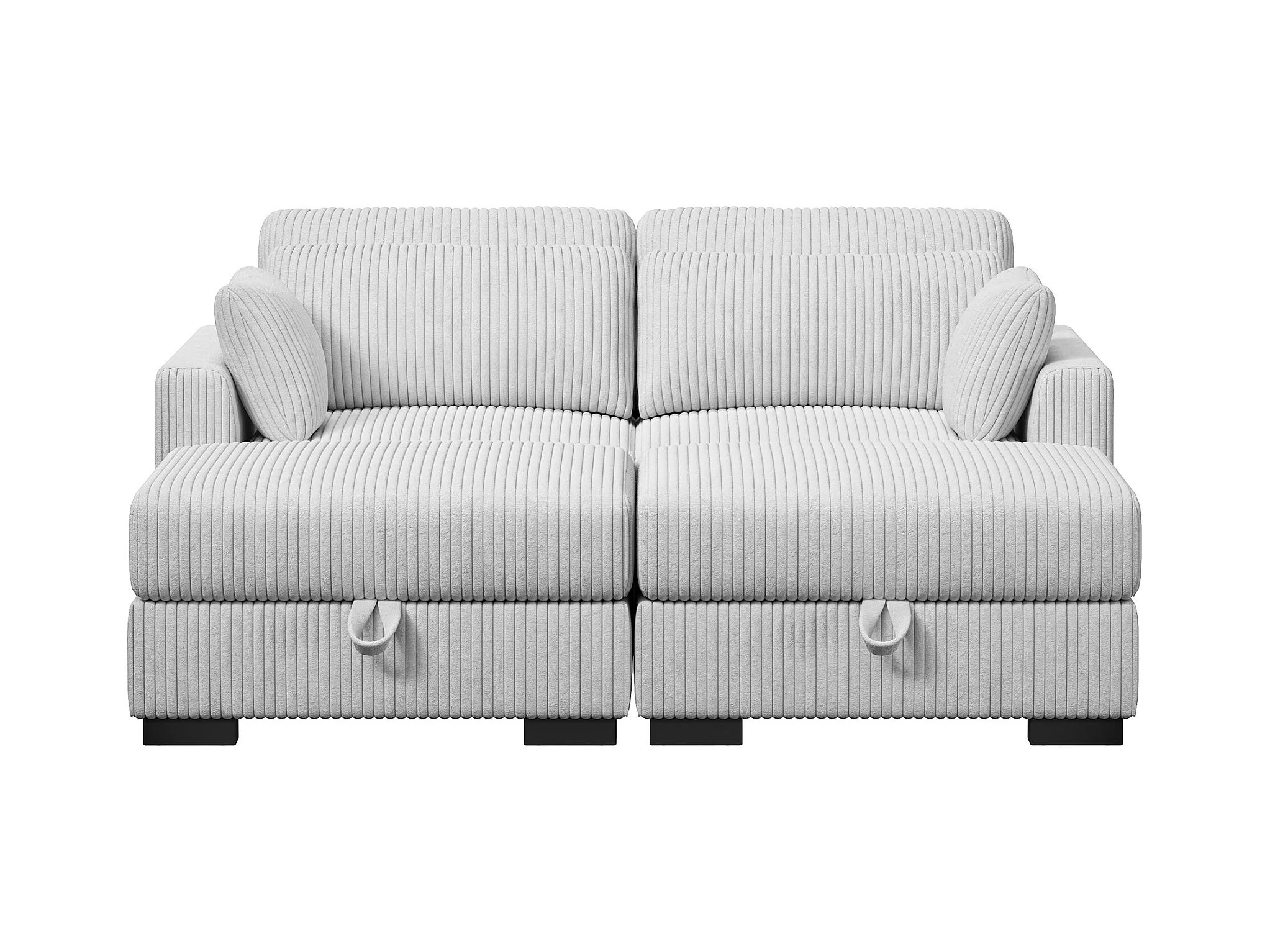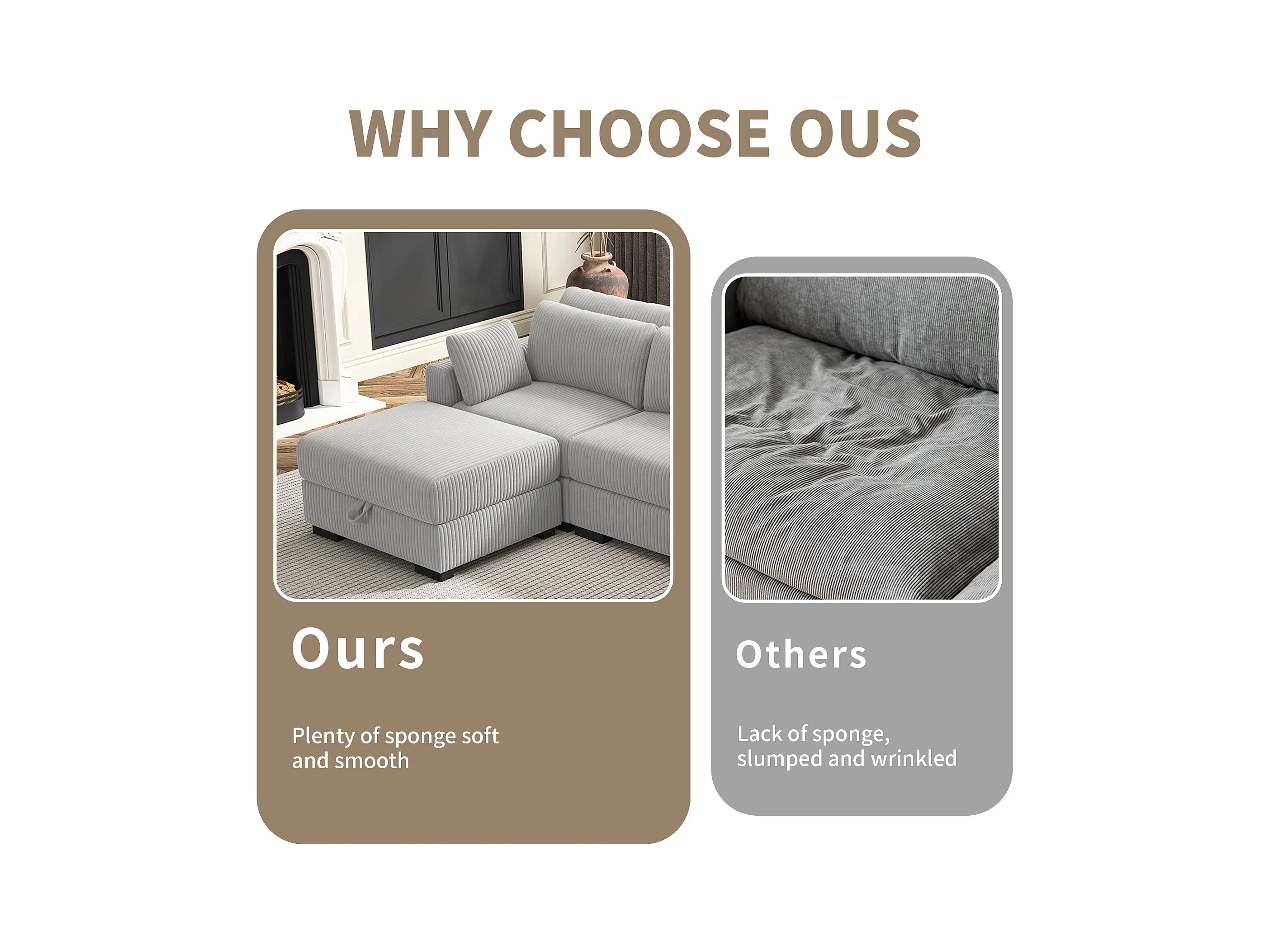 Canapé en forme de 2 places avec tabouret de rangement, canapé d'angle en velours côtelé avec ottoman, canapé doux pour salon, famille, gris