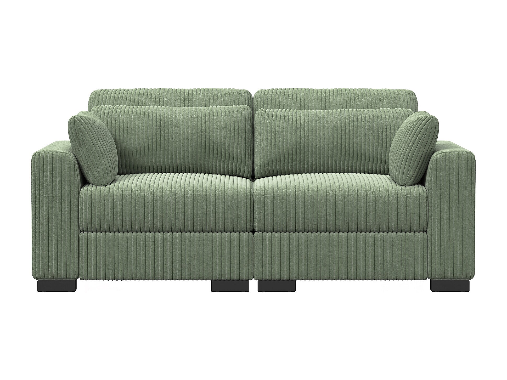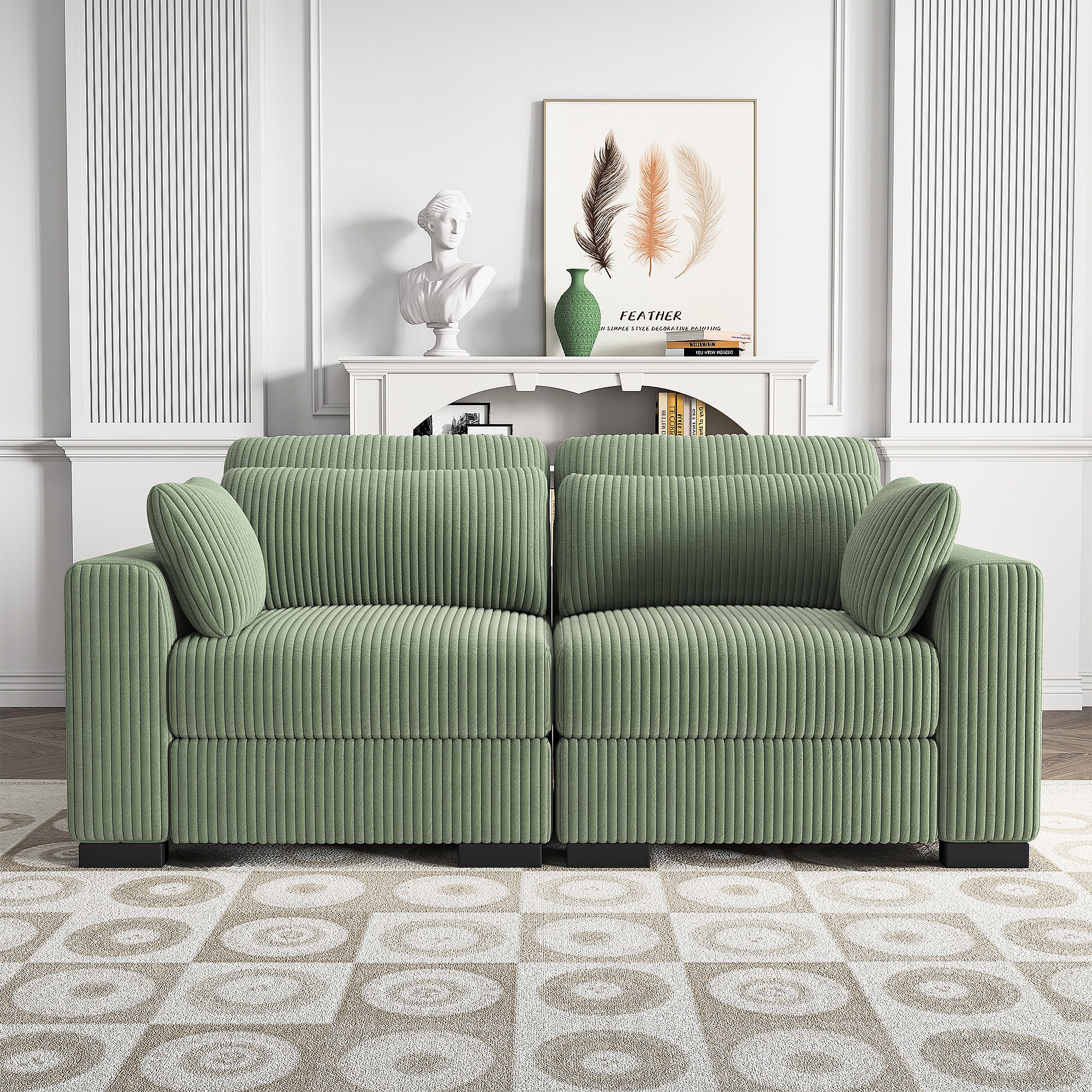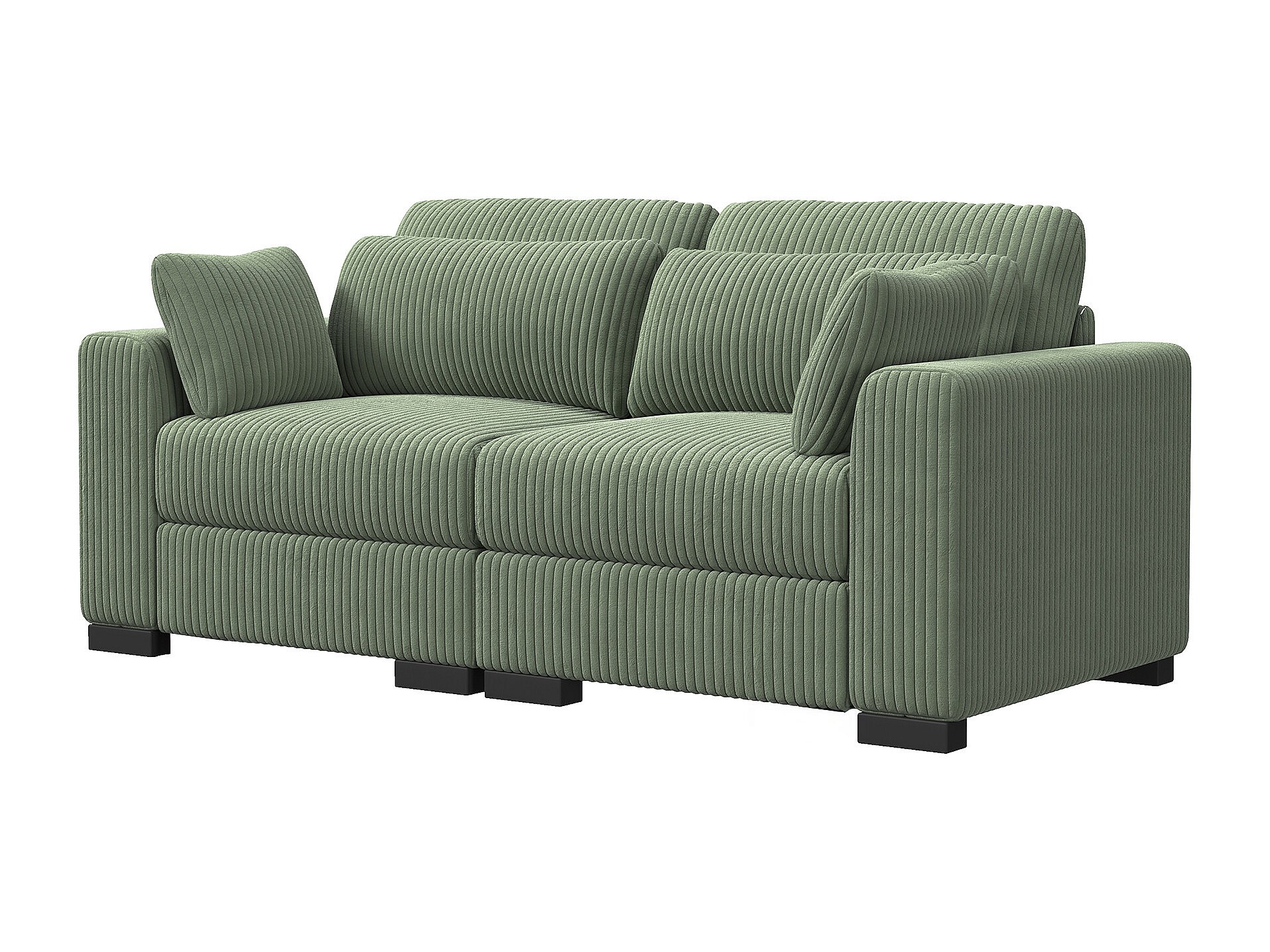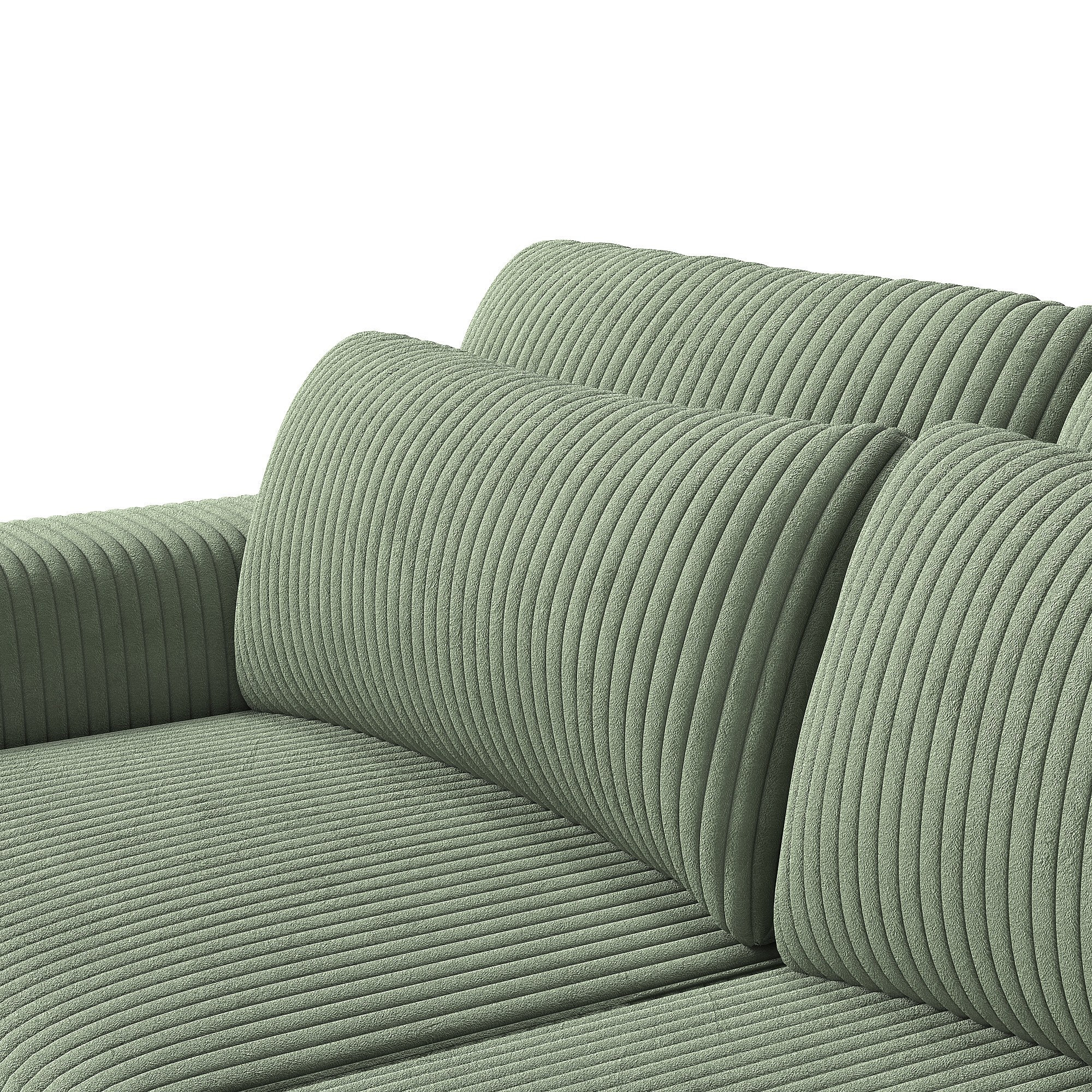 Canapé en Forme de 2 Places avec Tabouret de Rangement, canapé d'angle en Velours côtelé avec Ottoman, Moderne et Confortable, Vert