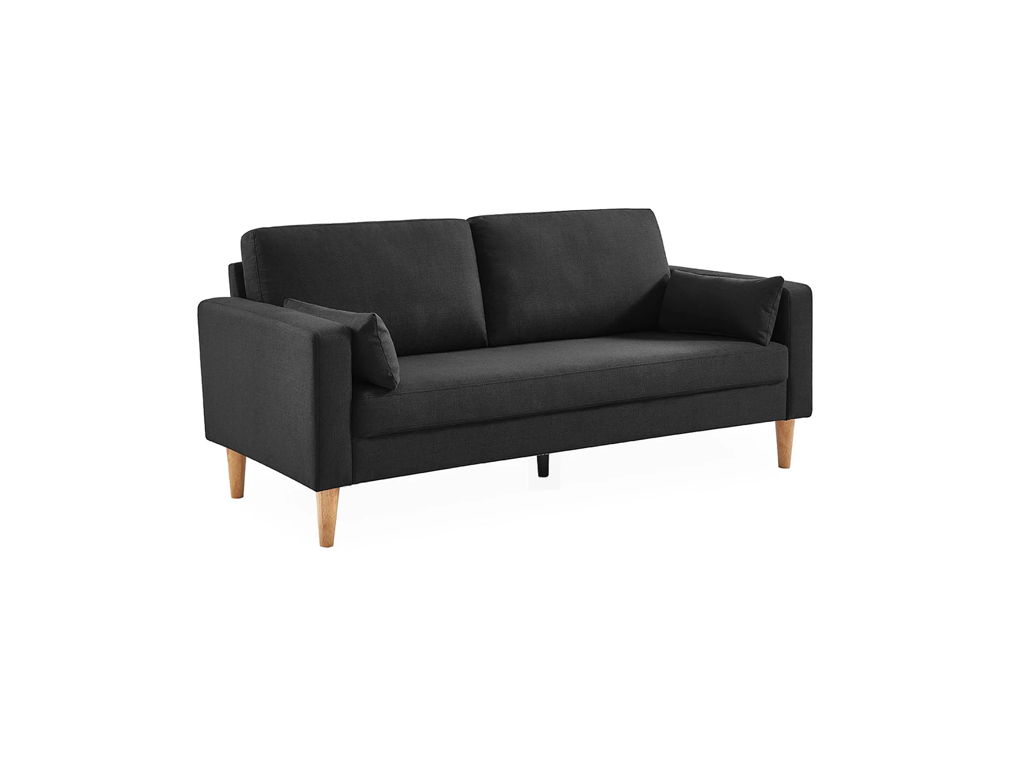 Canapé en tissu gris chiné foncé - Bjorn - Canapé 3 places fixe droit pieds bois. style scandinave