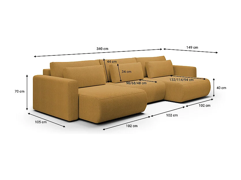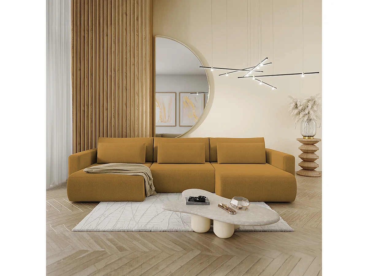 Canapé U 4 places convertible coffre Evy Jaune