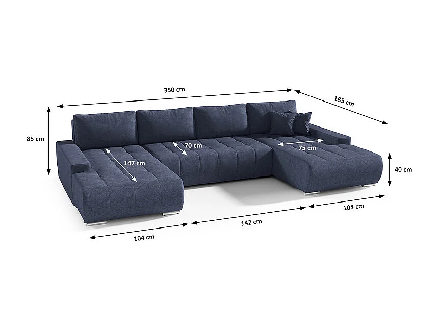 Canapé U 5 places convertible coffre Jonas Bleu Marine