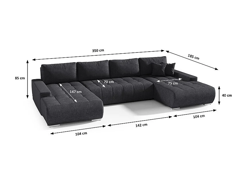Canapé U 5 places convertible coffre Jonas Gris anthracite