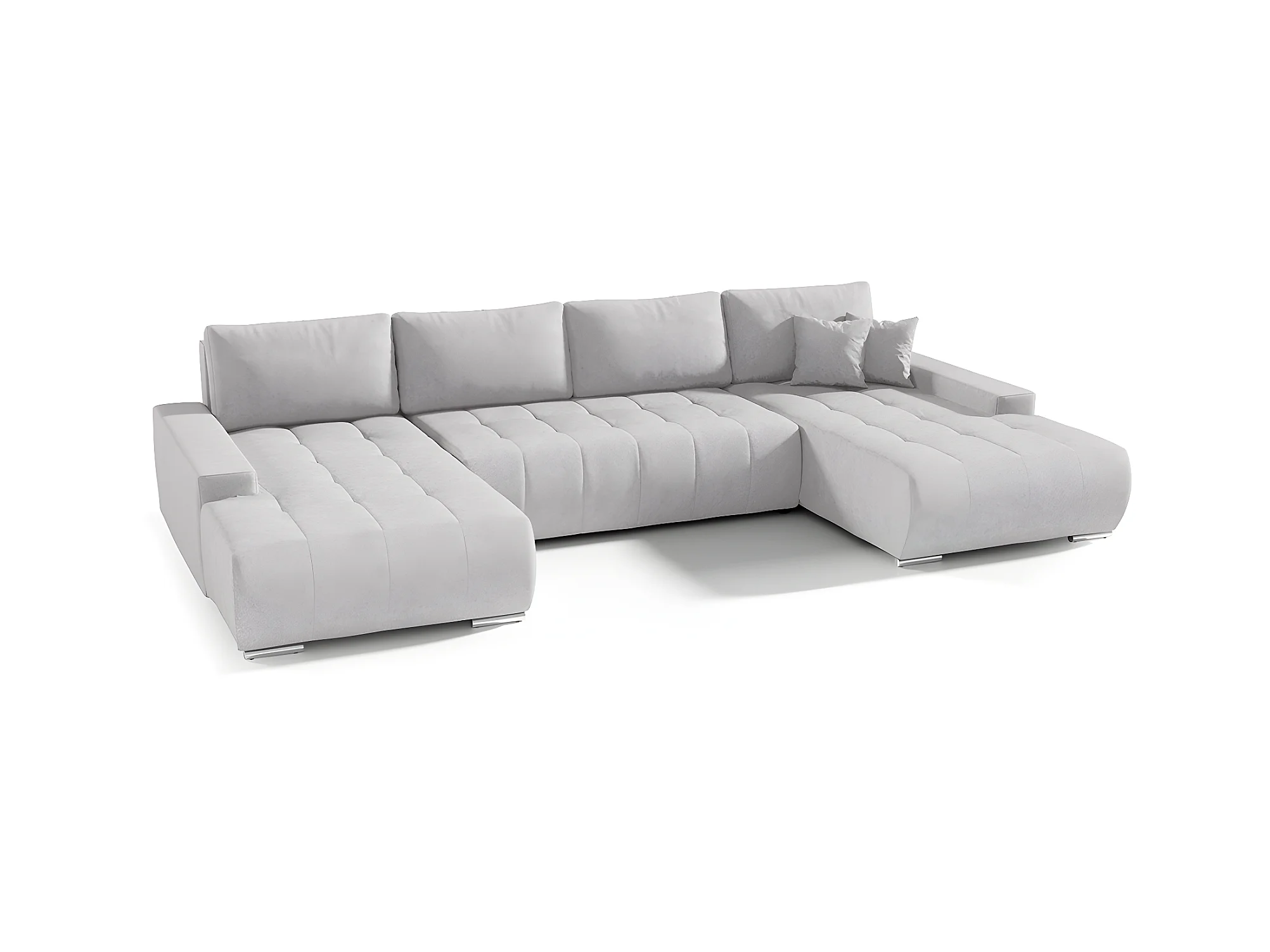 Canapé U 5 places convertible coffre Jonas Gris clair