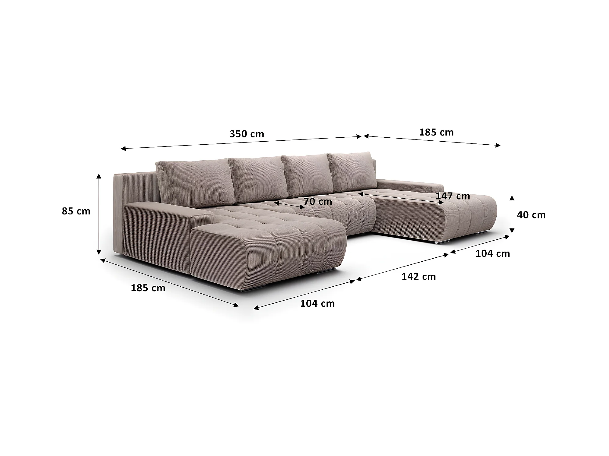 Canapé U 5 places convertible coffre Jonas velours côtelé Taupe