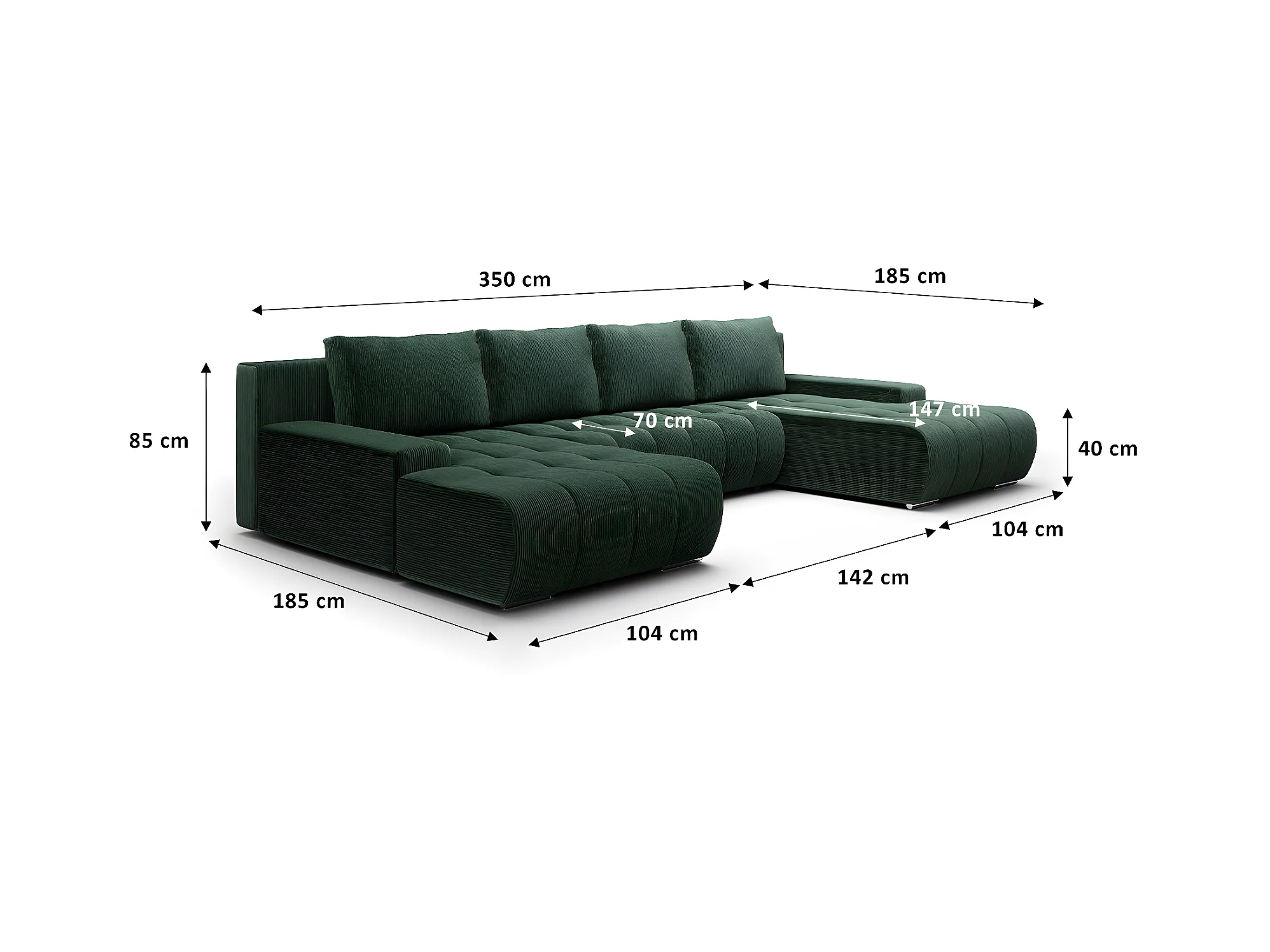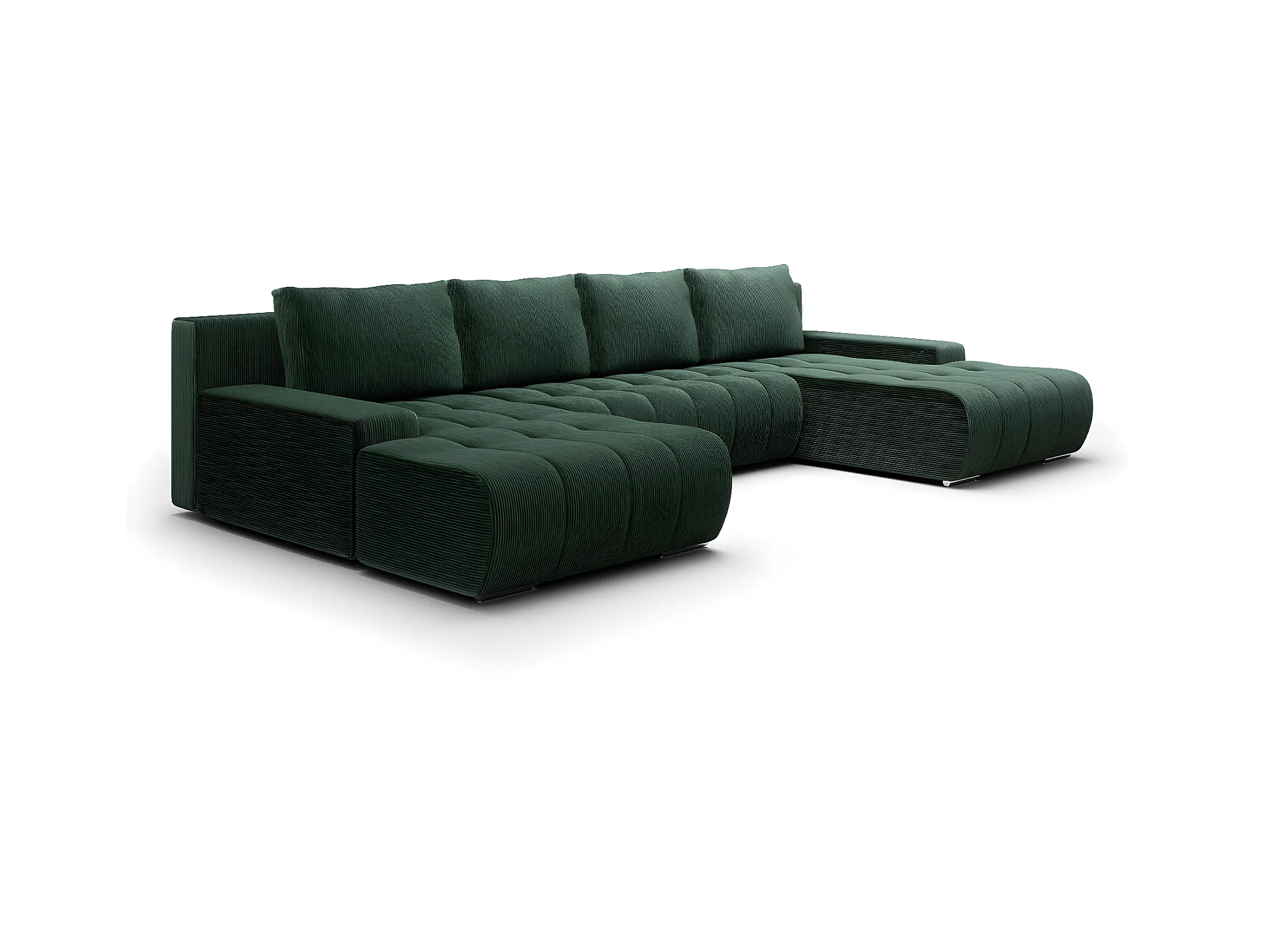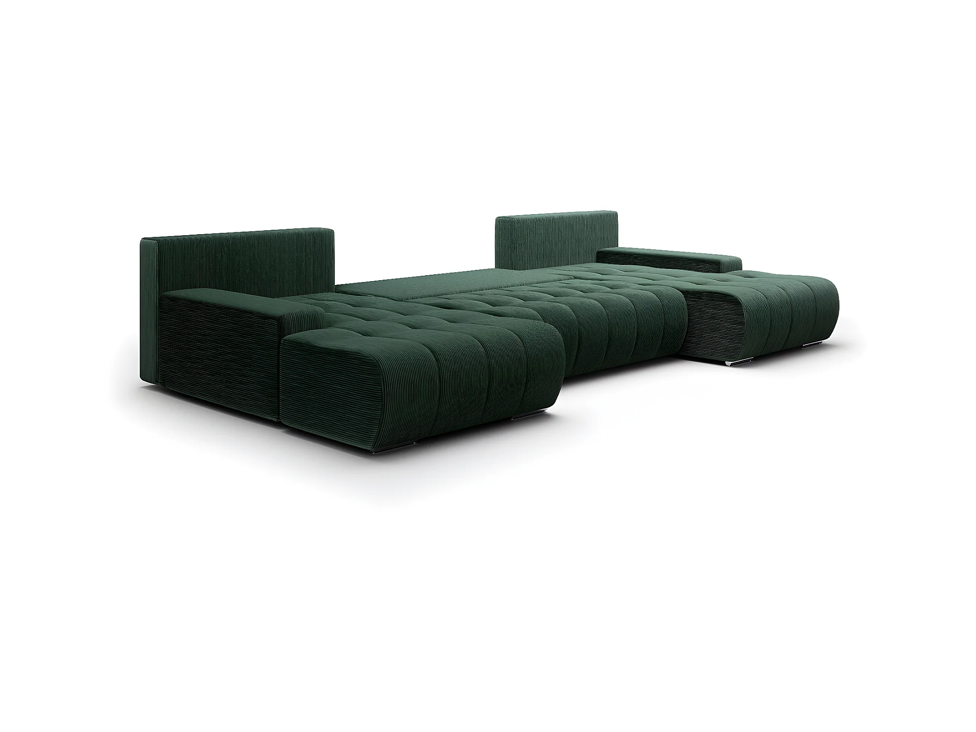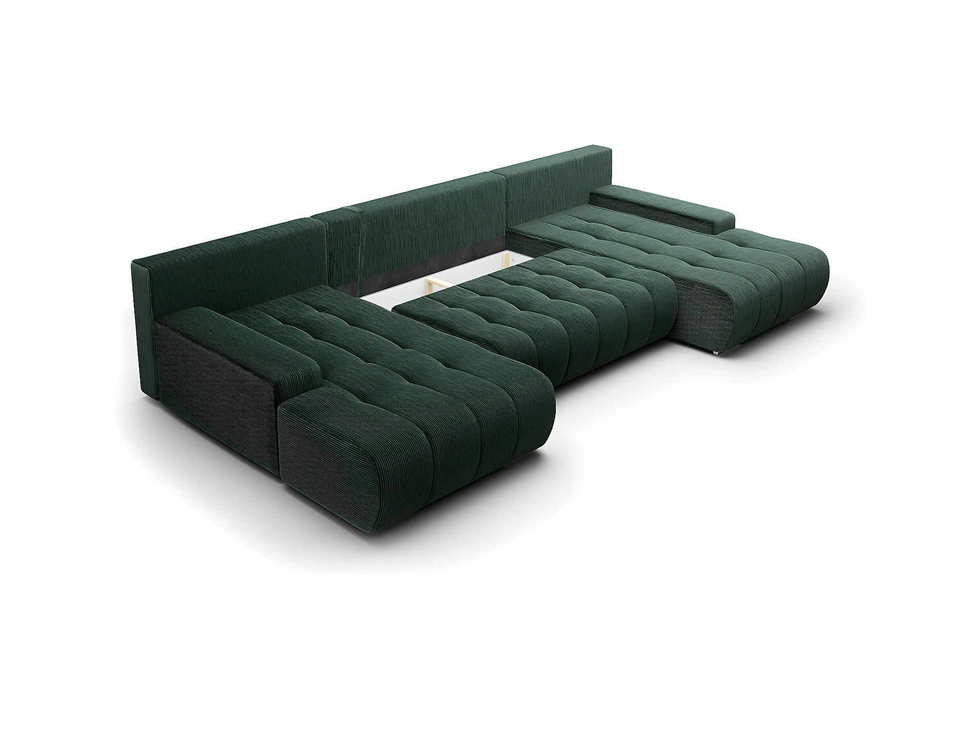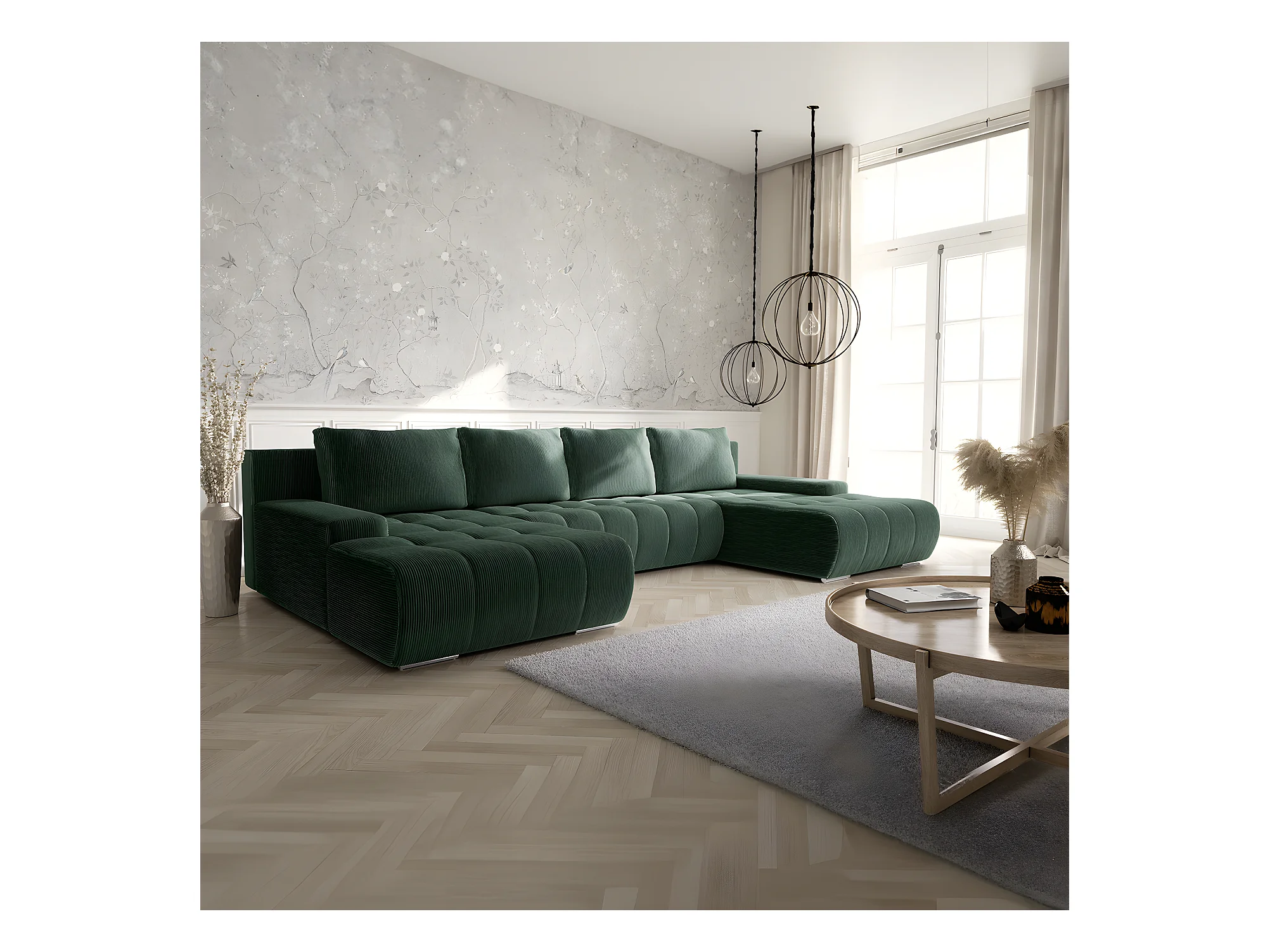 Canapé U 5 places convertible coffre Jonas velours côtelé Vert Sapin