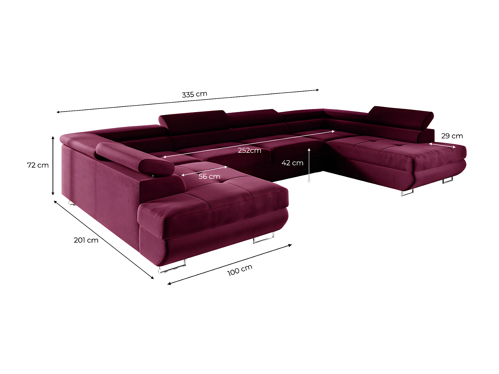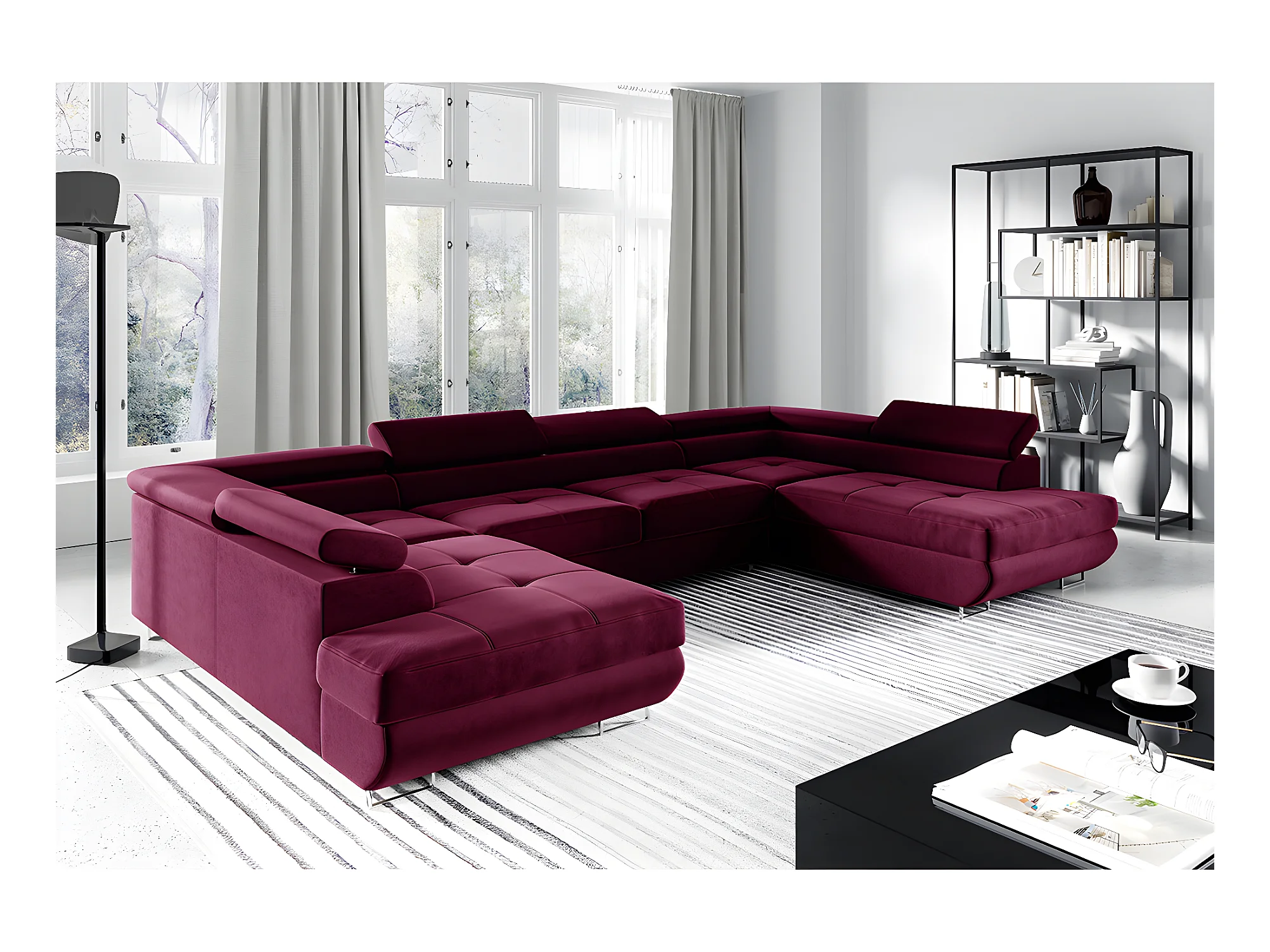 Canapé en U 5 places convertible avec coffre Wilson Bordeaux