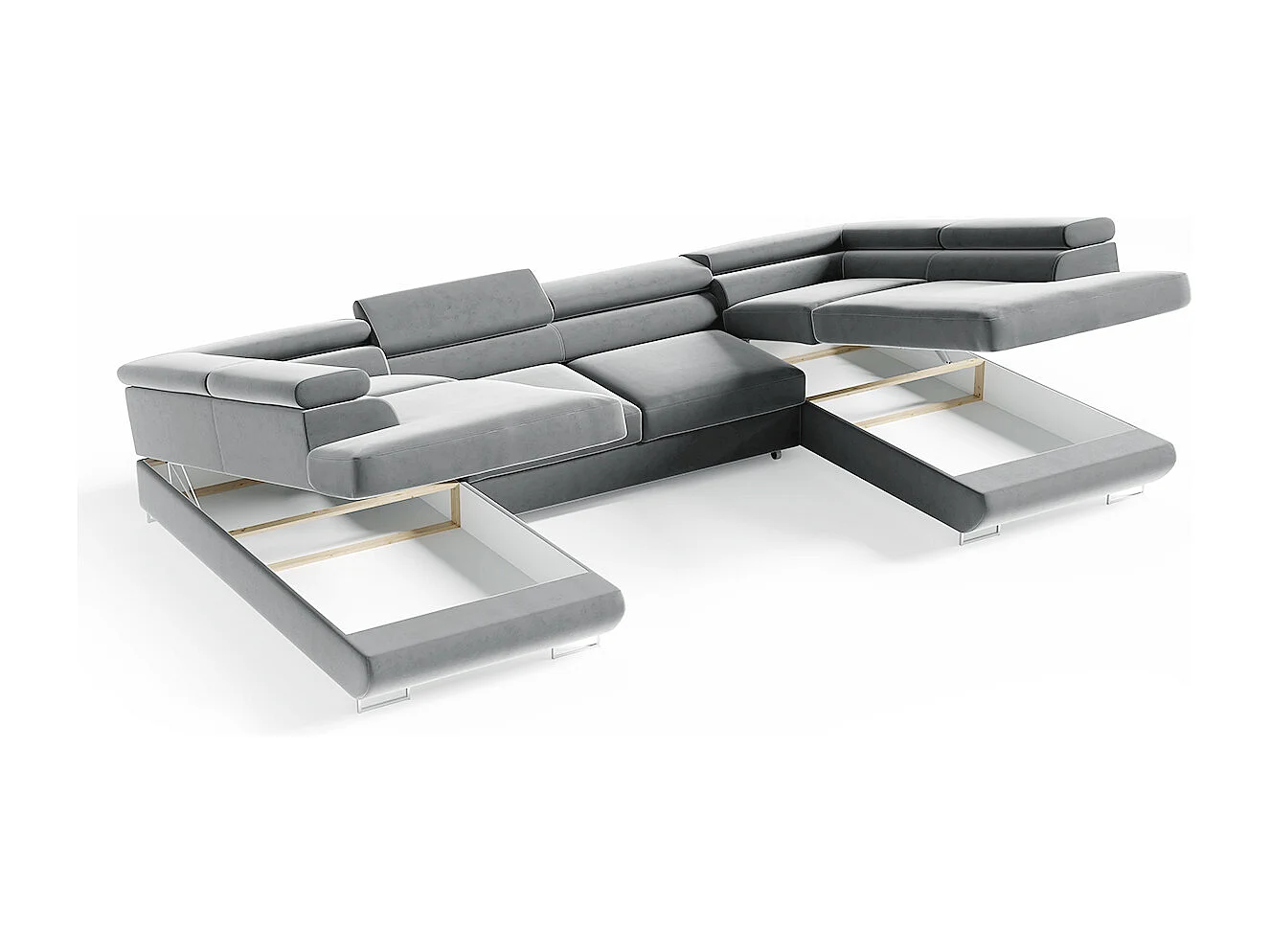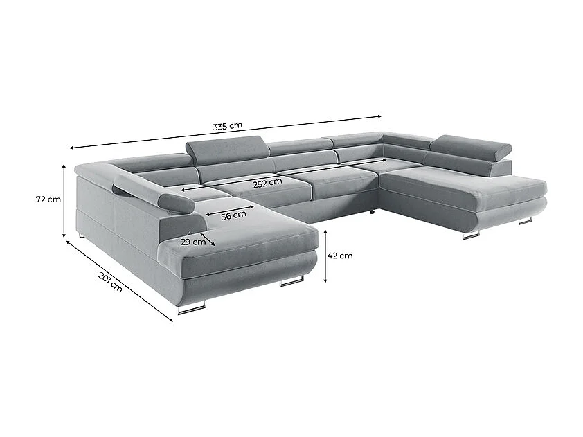 Canapé en U 5 places convertible avec coffre Lyam Gris clair